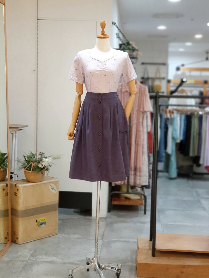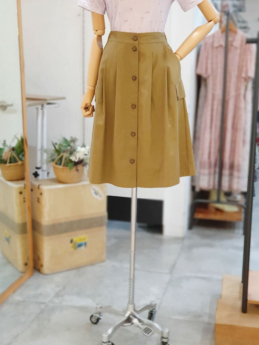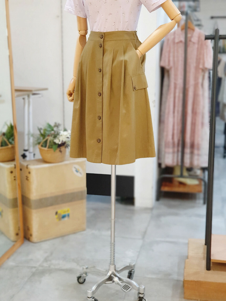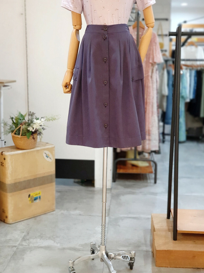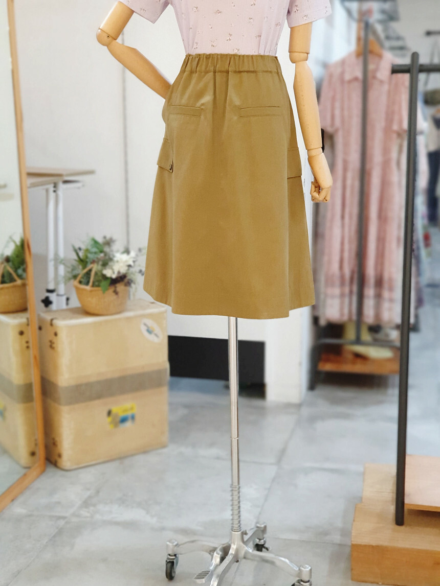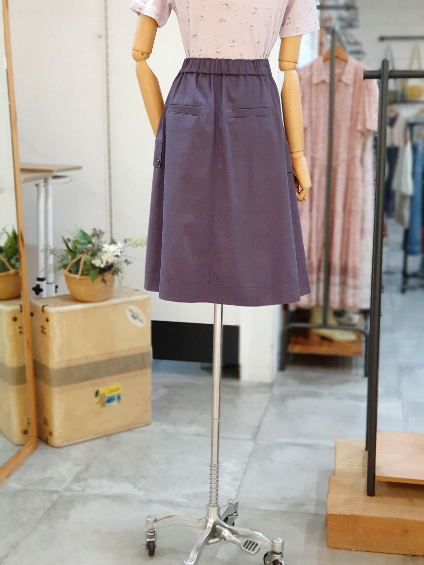 미디 기장의 A 라인 코튼 트윌 스커트입니다.