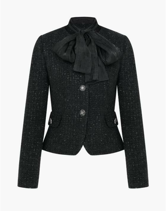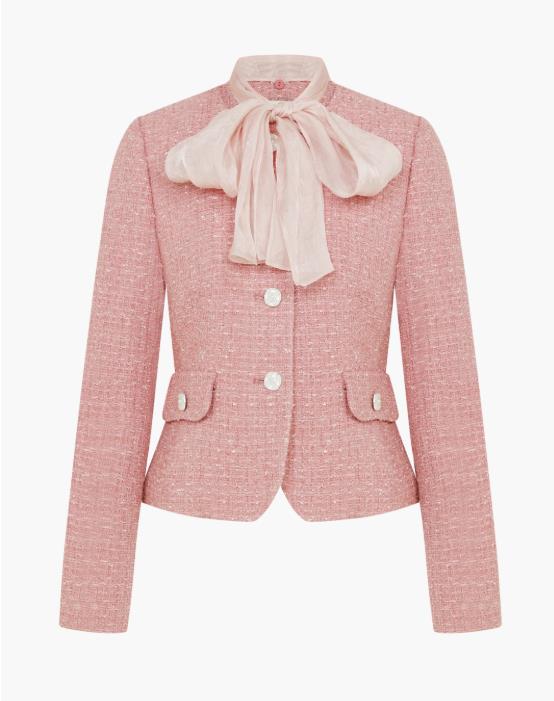 고급스러운 트위드 소재에 우아한 리본 디테일이 더해진 페미닌한 무드의 자켓입니다.