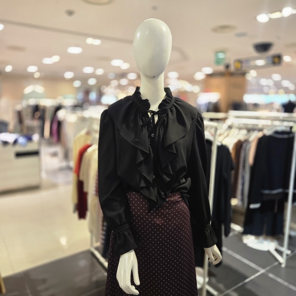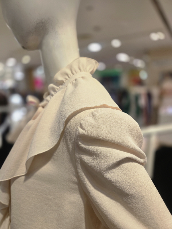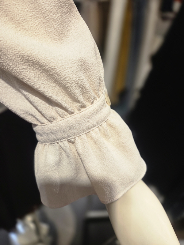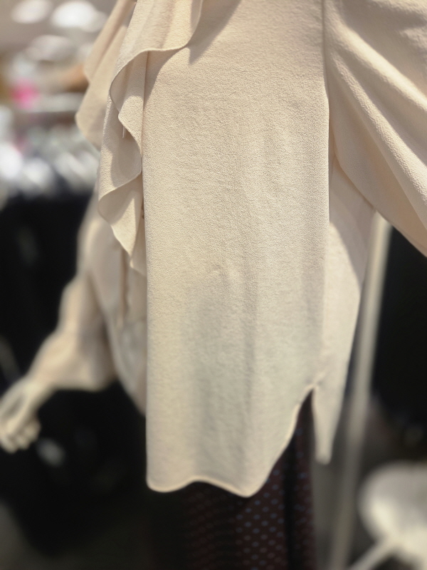ow5ab8030과 동일 아이템으로? 목선과 소매부분 러플로 이루어진 여성스러운 블라우스입니다.