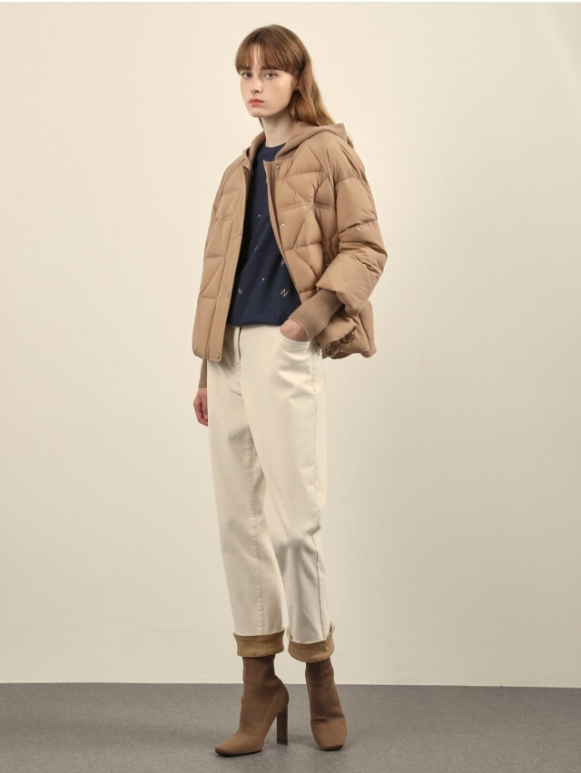 밑단 내부 양옆에 드로우스트링을 더해 실루엣 조절이 용이하며 차분한 컬러로 높은 활용도를 선사하는