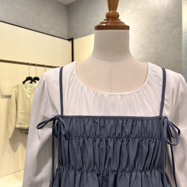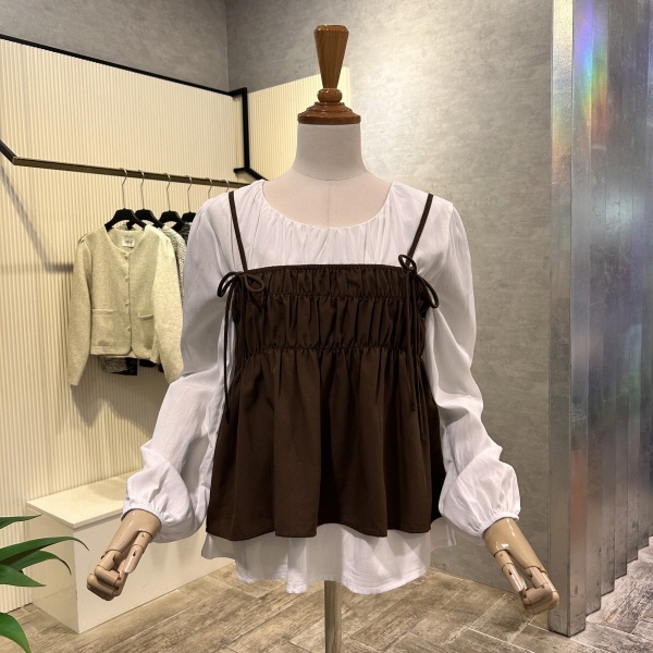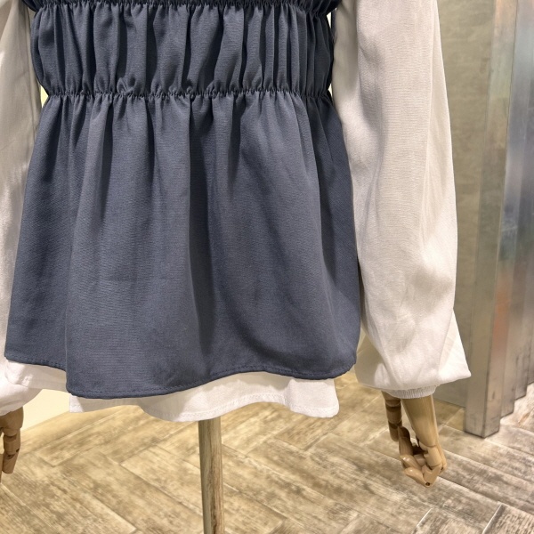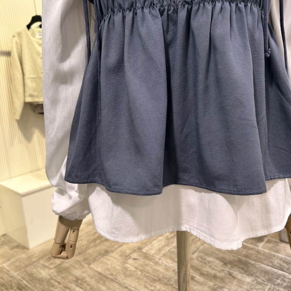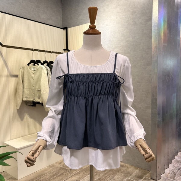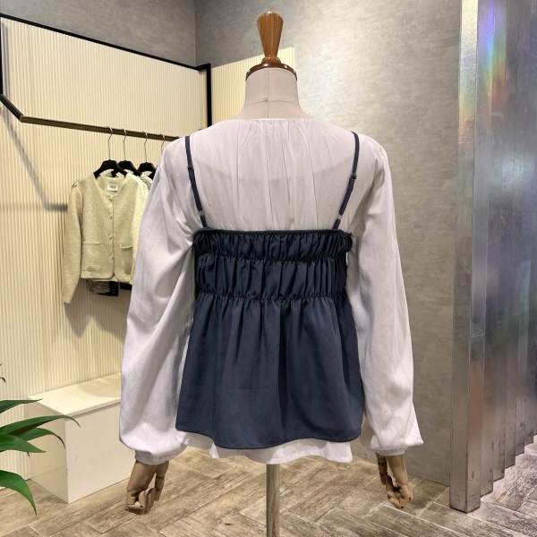 2025년 f/w?신상 탑 베스트 레이어드 셔링 라운드 블라우스 입니다.