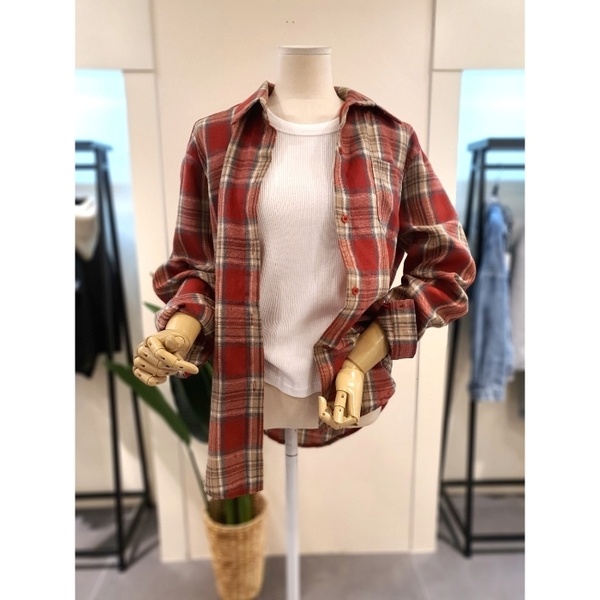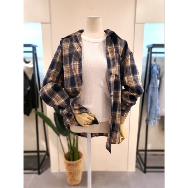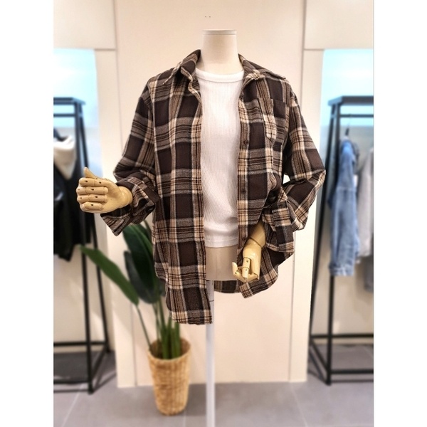 두께감이 있는 원단의 체크 남방입니다. 아우터로 활용하기도 좋습니다.