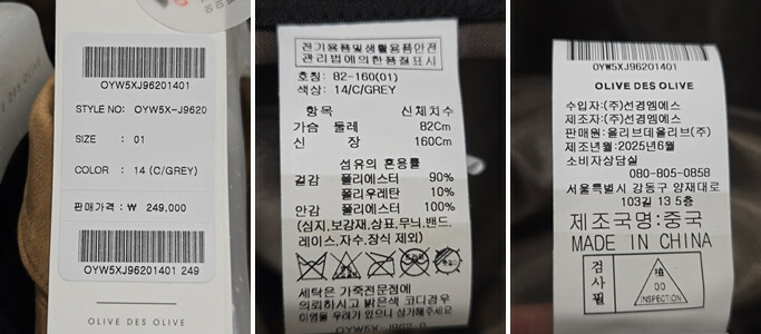 · 안감 : ■ 전체 □ 부분 □ 없음