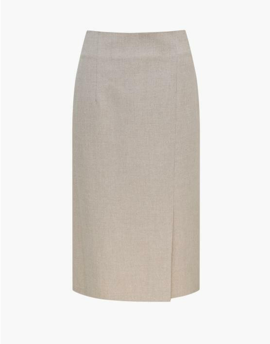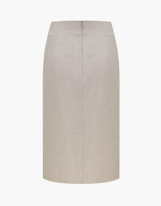 미디 기장감의 스커트로 페미닌한 무드를 보여줍니다.
