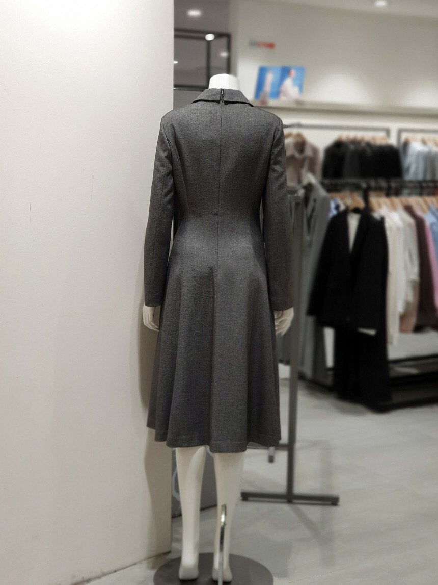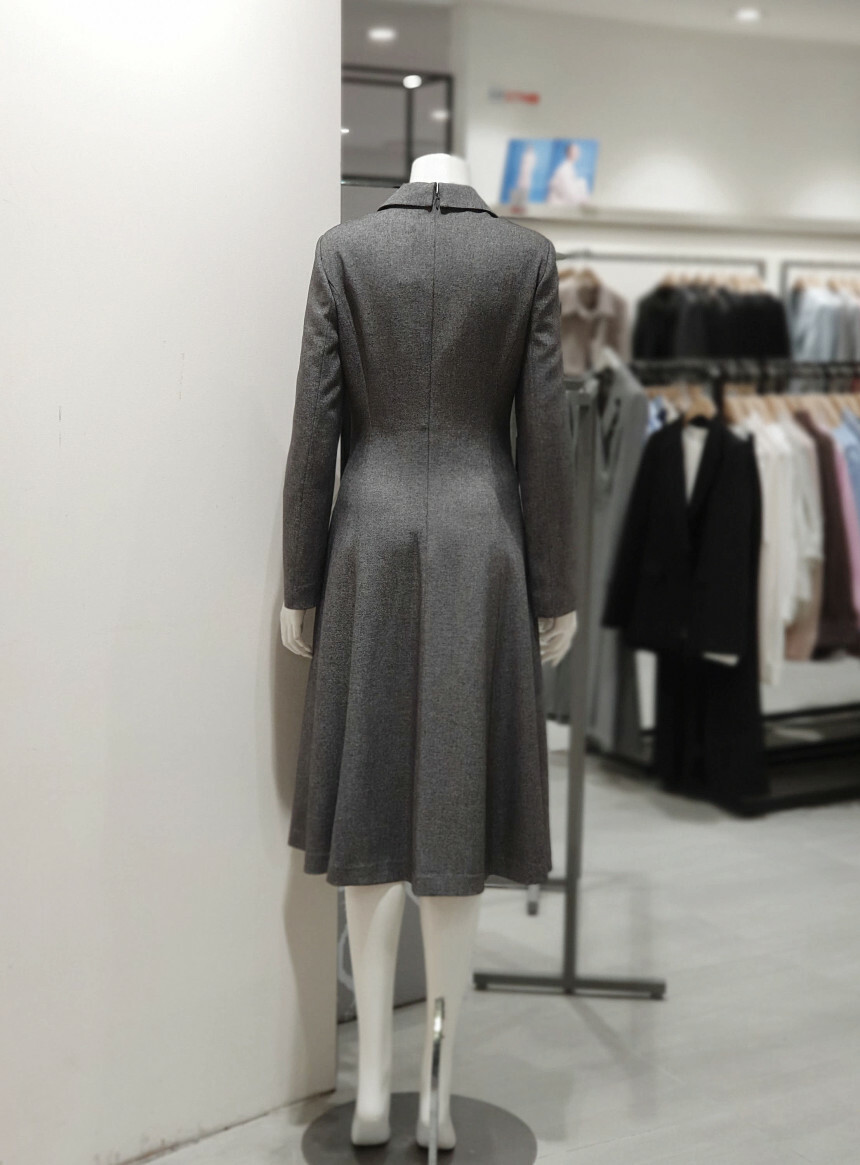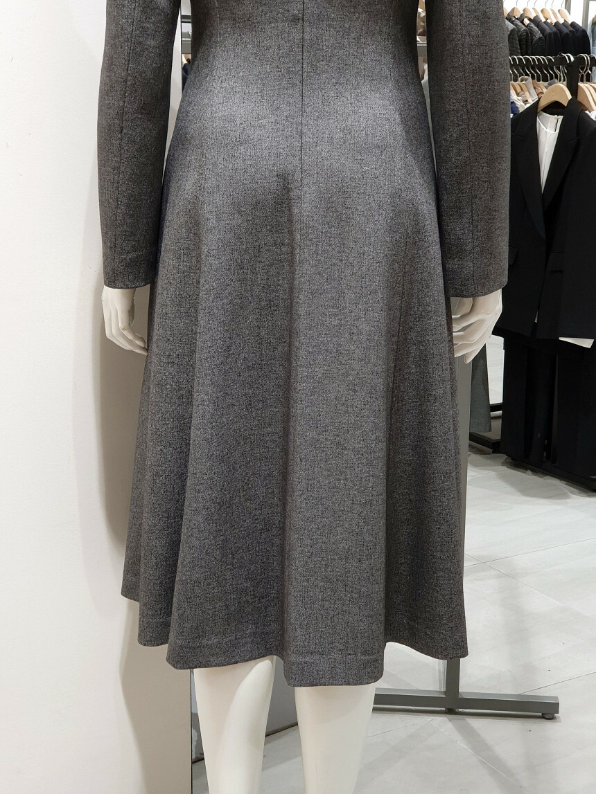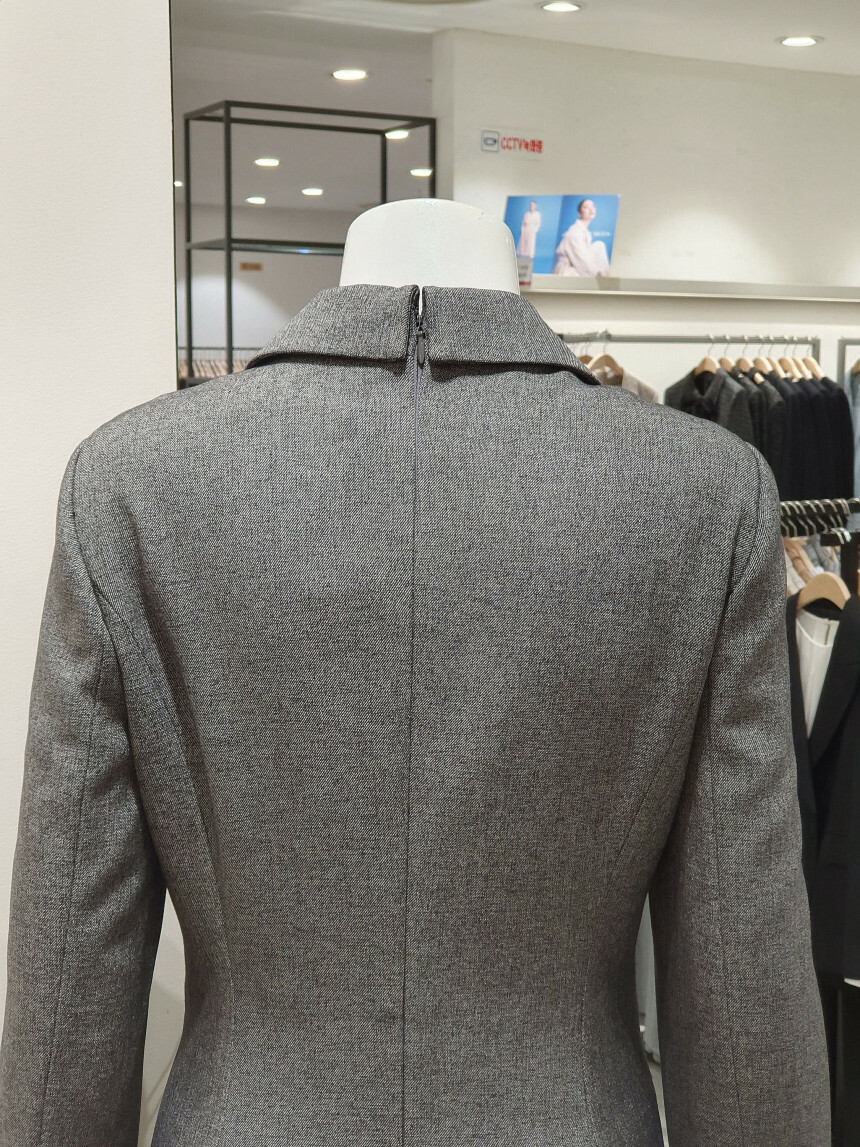 후면 혼솔 지퍼 클로징으로 간편하며, 깔끔한 여밈으로 마무리되며