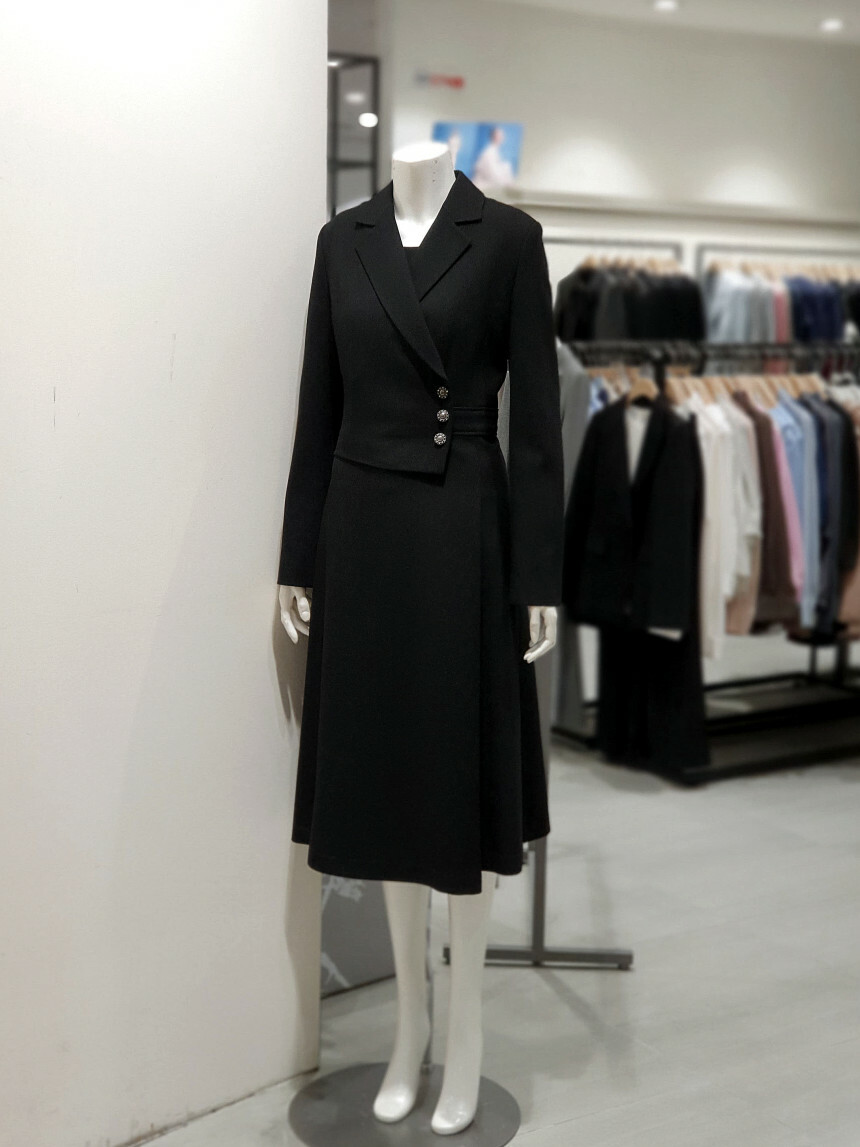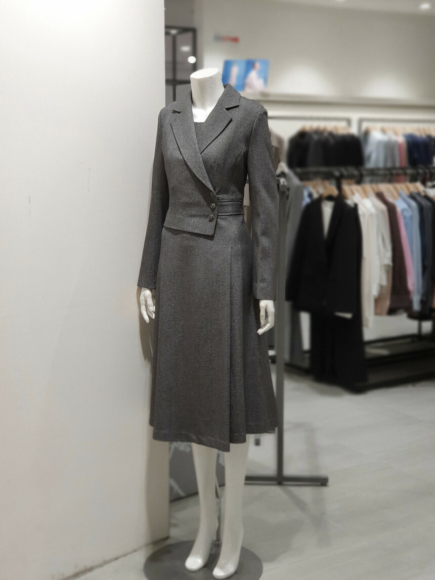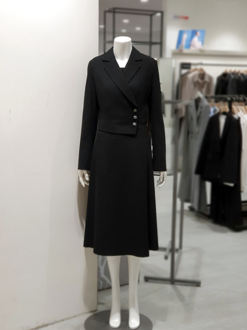페미닌한 무드의 재킷 레이어드 롱 원피스입니다.