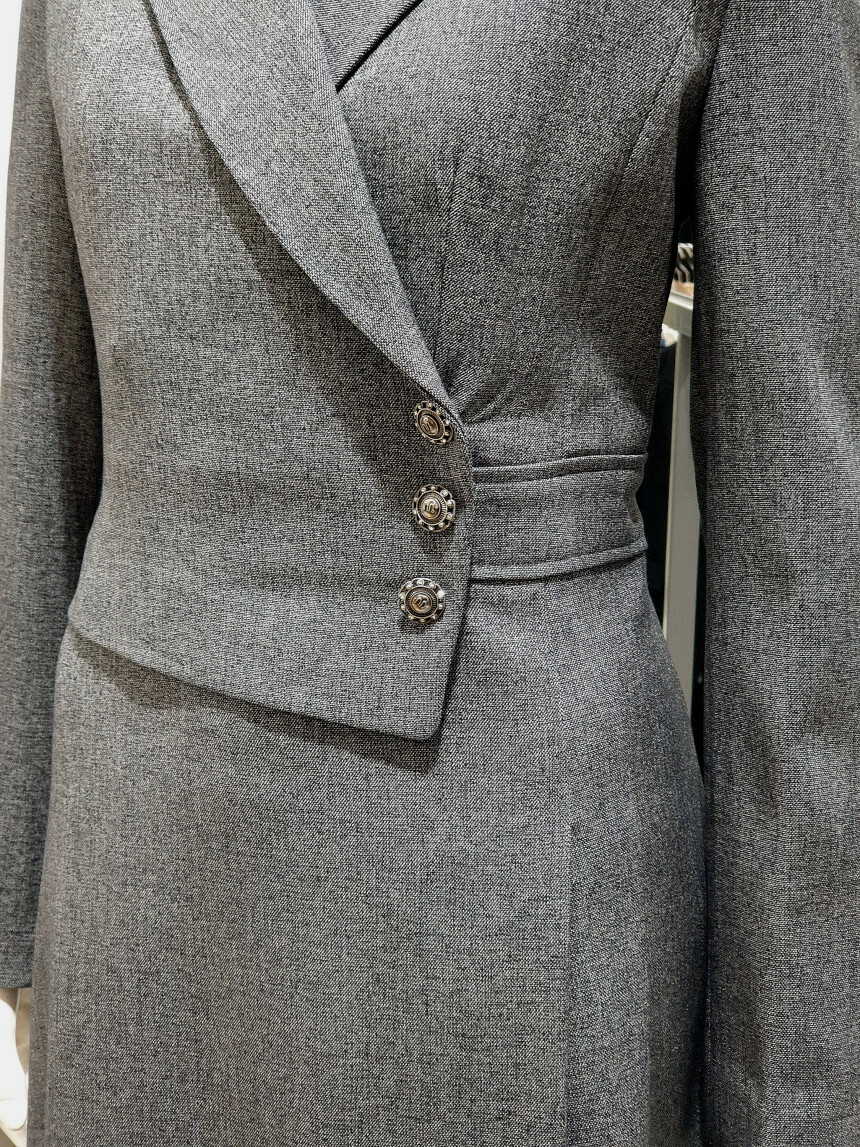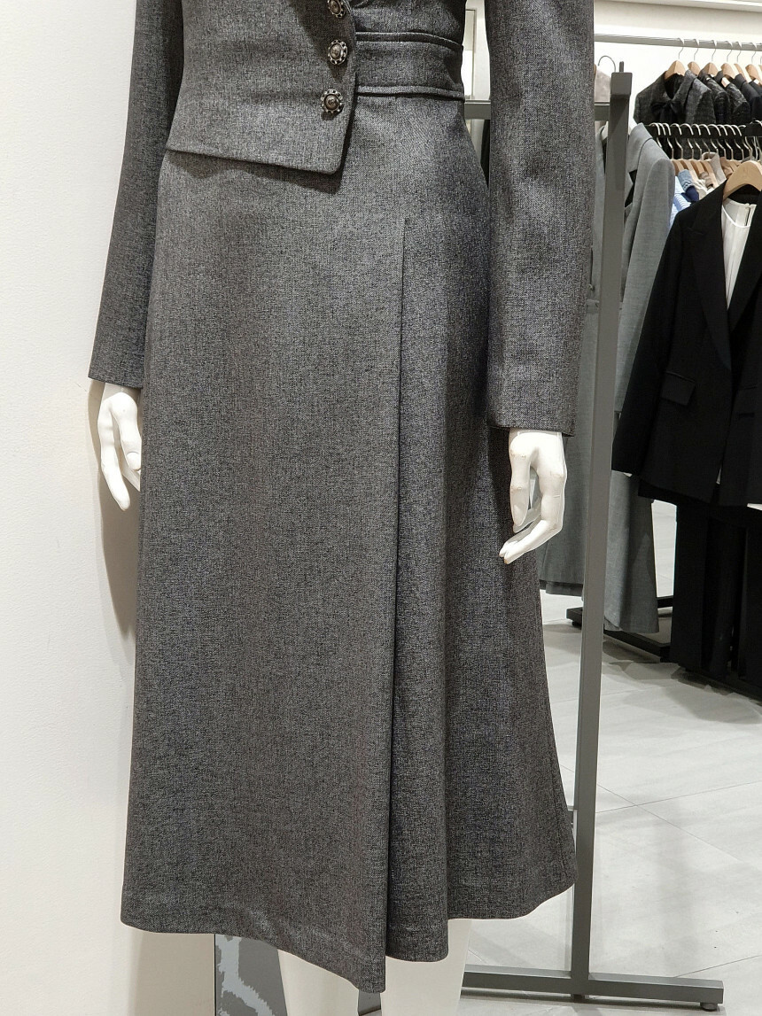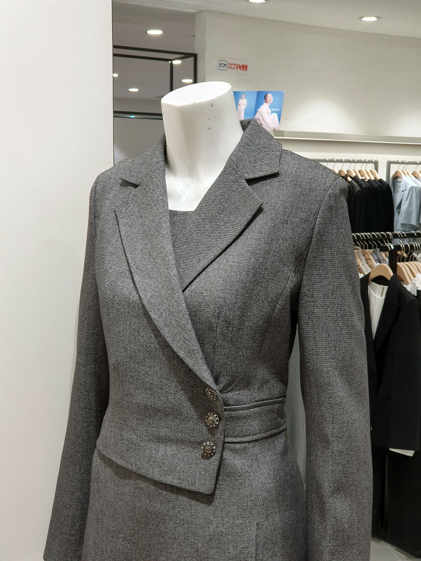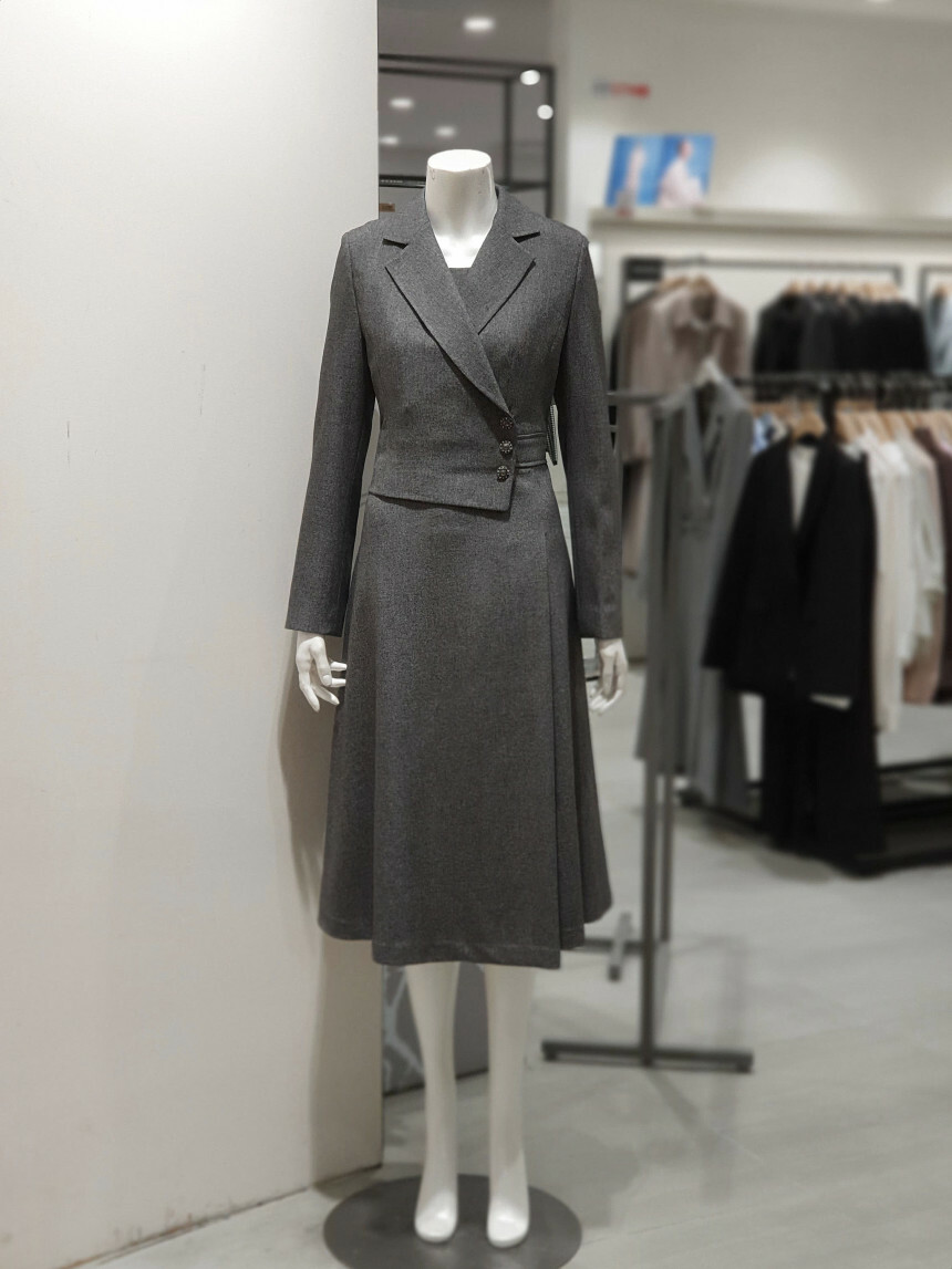 페미닌한 무드의 재킷 레이어드 롱 원피스입니다.