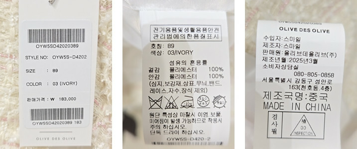 · 취급 시 주의사항 : 원단특성상 마찰시 이염,보풀,미어짐이 발생 가능하므로 착용시 주의 하십시오.