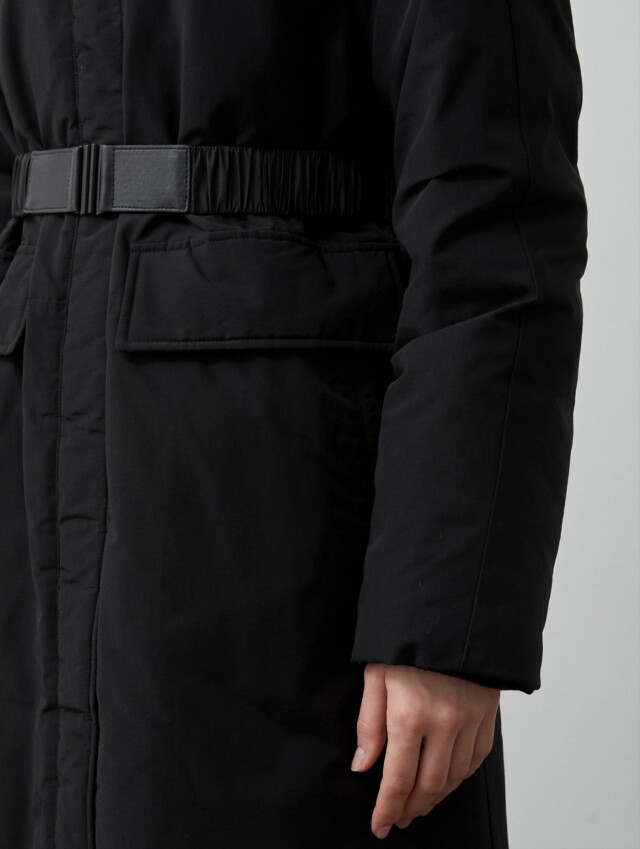 롱기장감의 멋스러운 점퍼로 구스를 충전하여