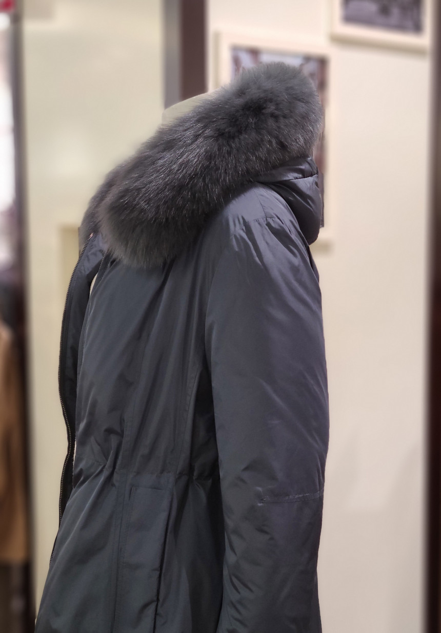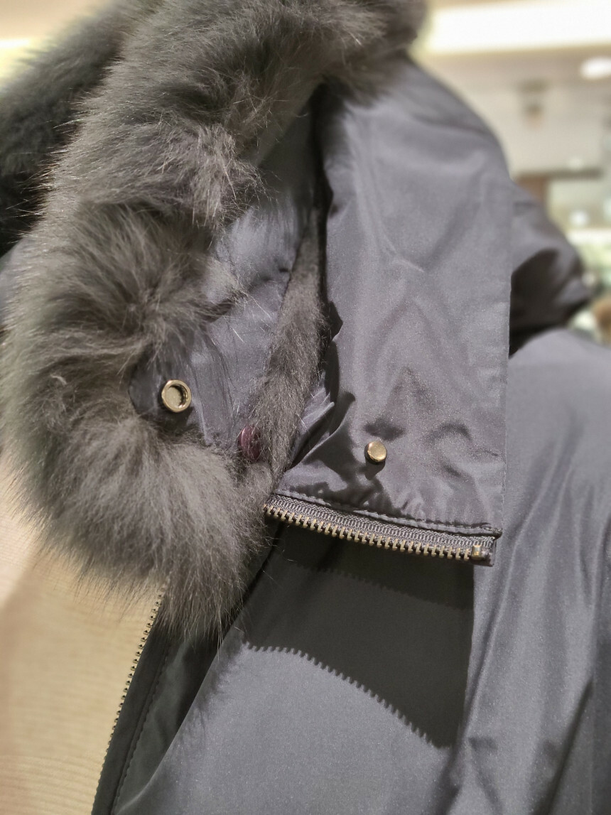 겉감: 폴리에스테르 100%, 안감: 폴리에스테르 100%, 충전재: 거위솜털 80%, 거위깃털 20%, 배색: 폭스 100%