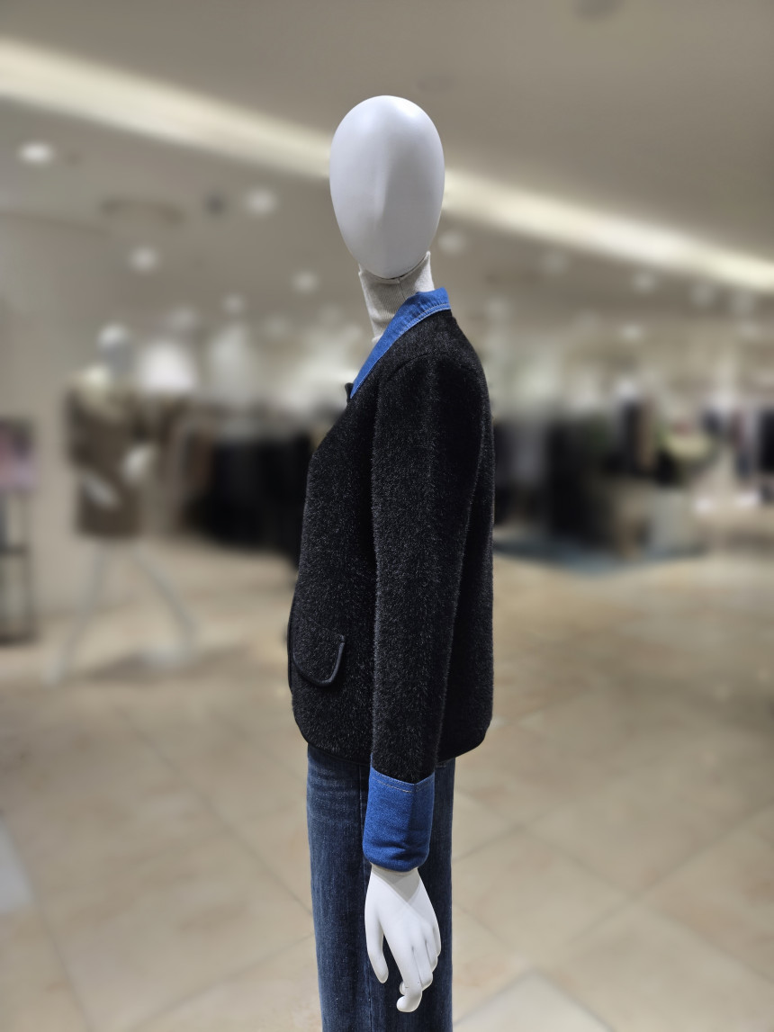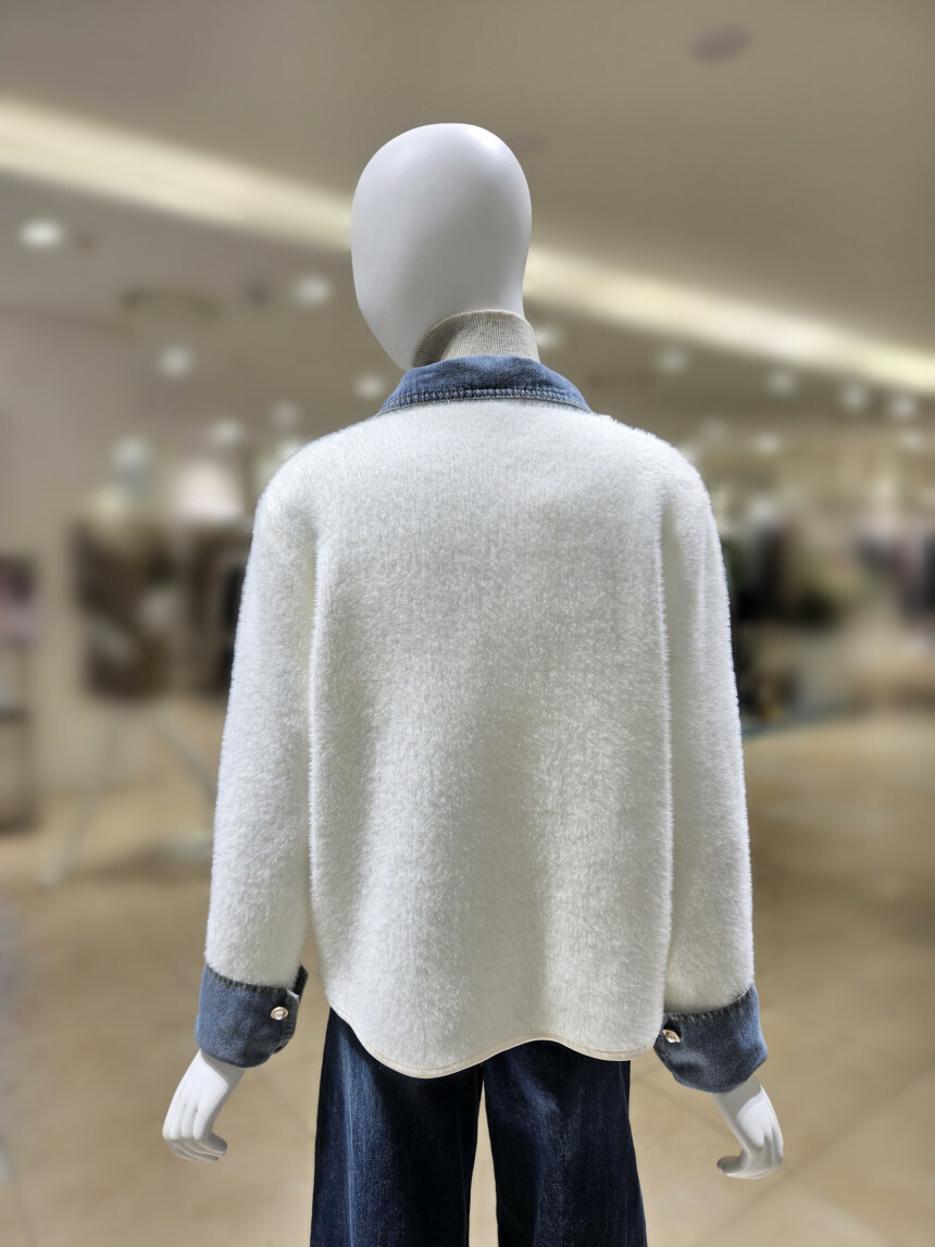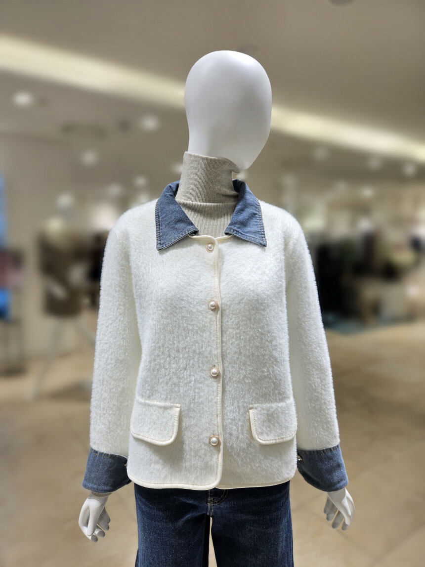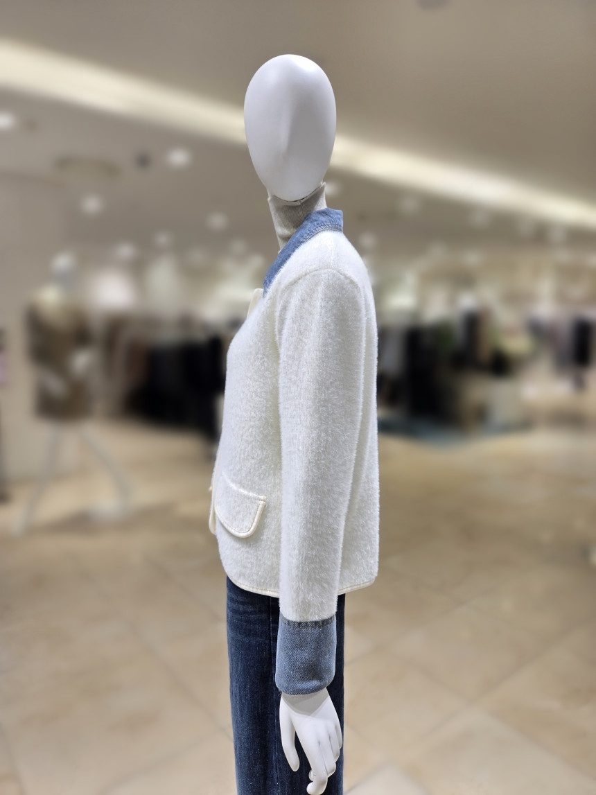 데님 카라 배색 부클 니트 가디건 YK5W-D409