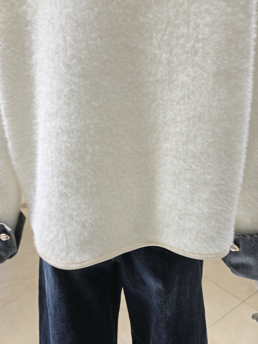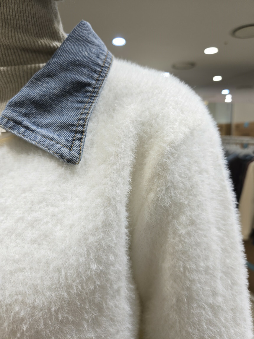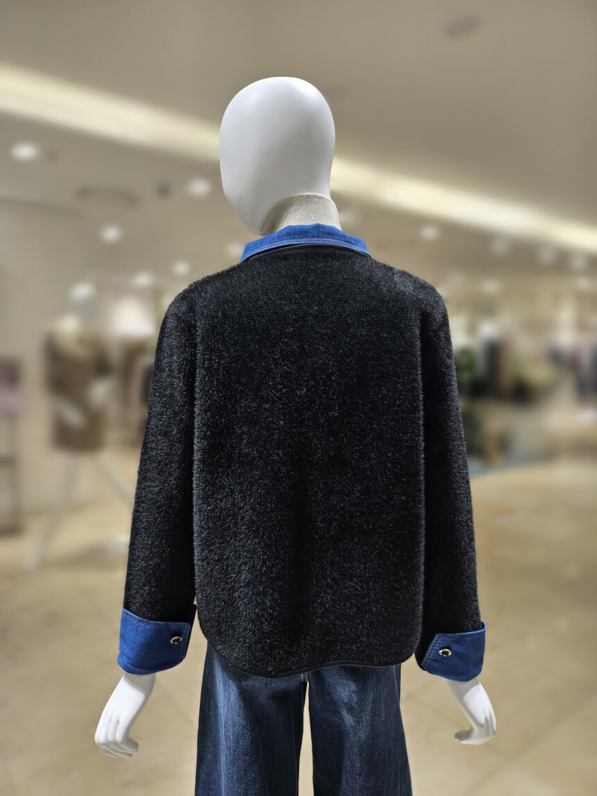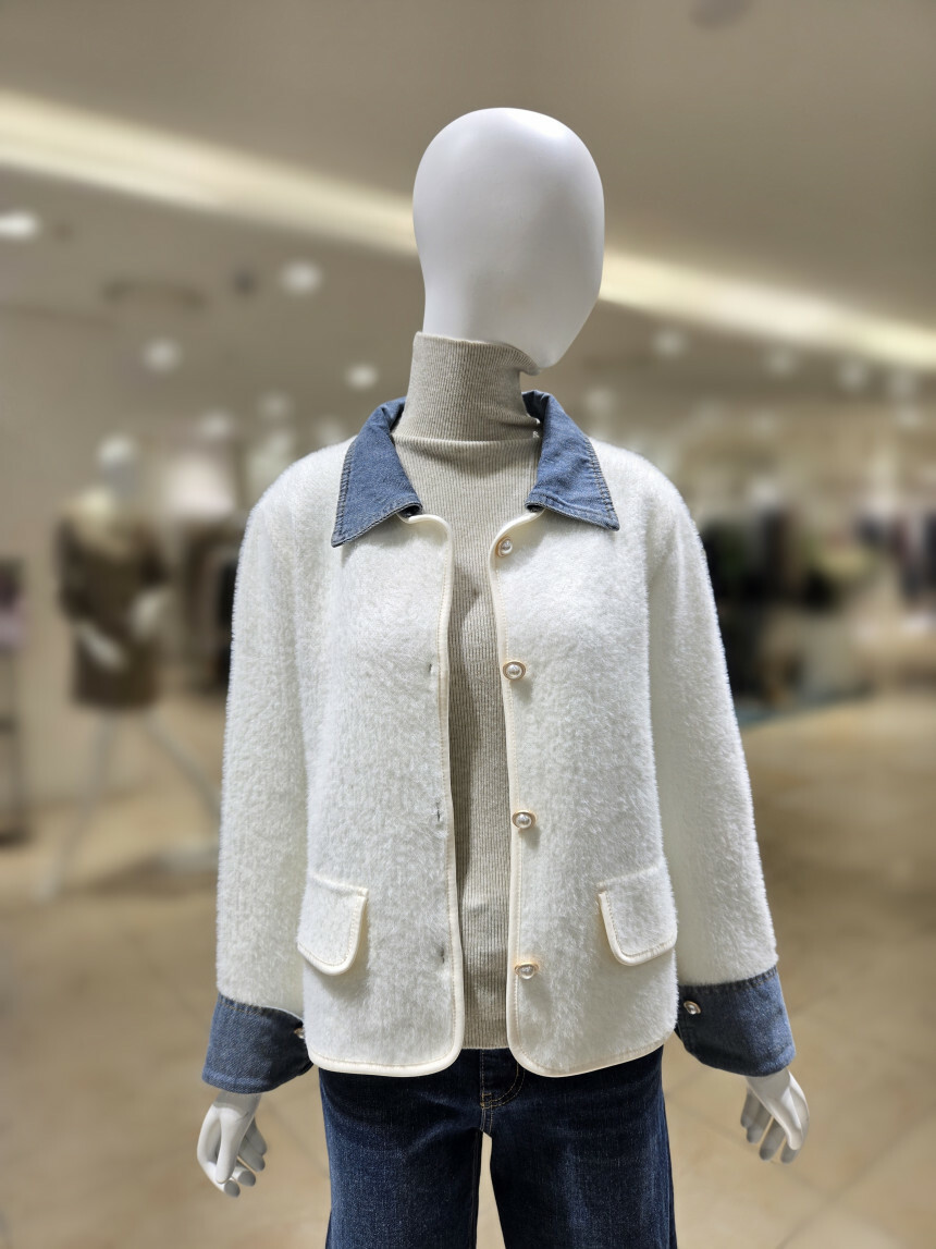 데님 카라 배색 부클 니트 가디건 YK5W-D409