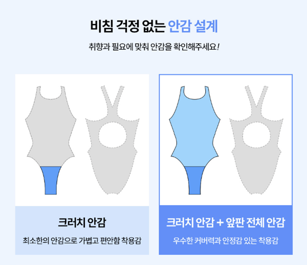 수영복 소재는 우레탄 성분으로 이루어져 있어 물에 들어가면 잘 늘어나도록 되어 있습니다.