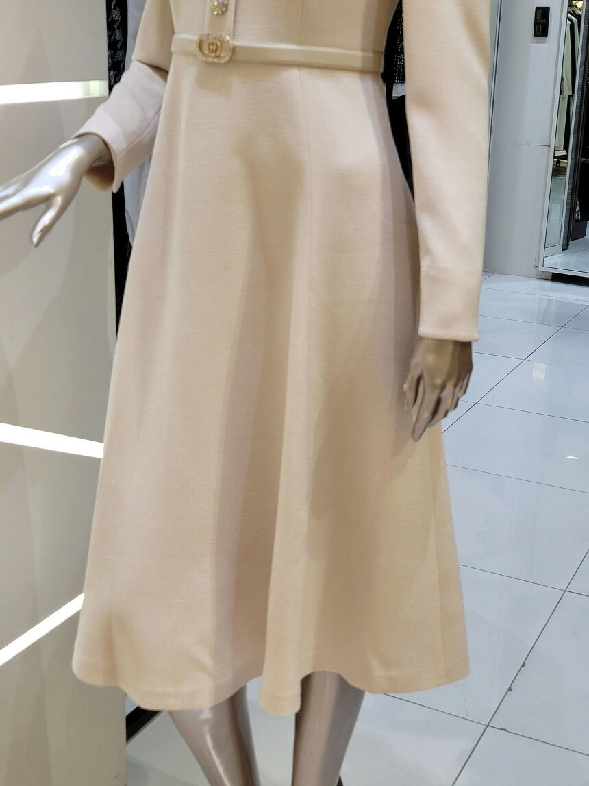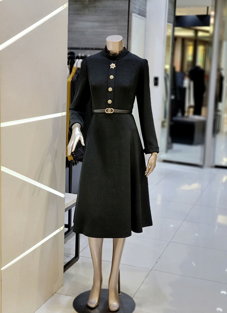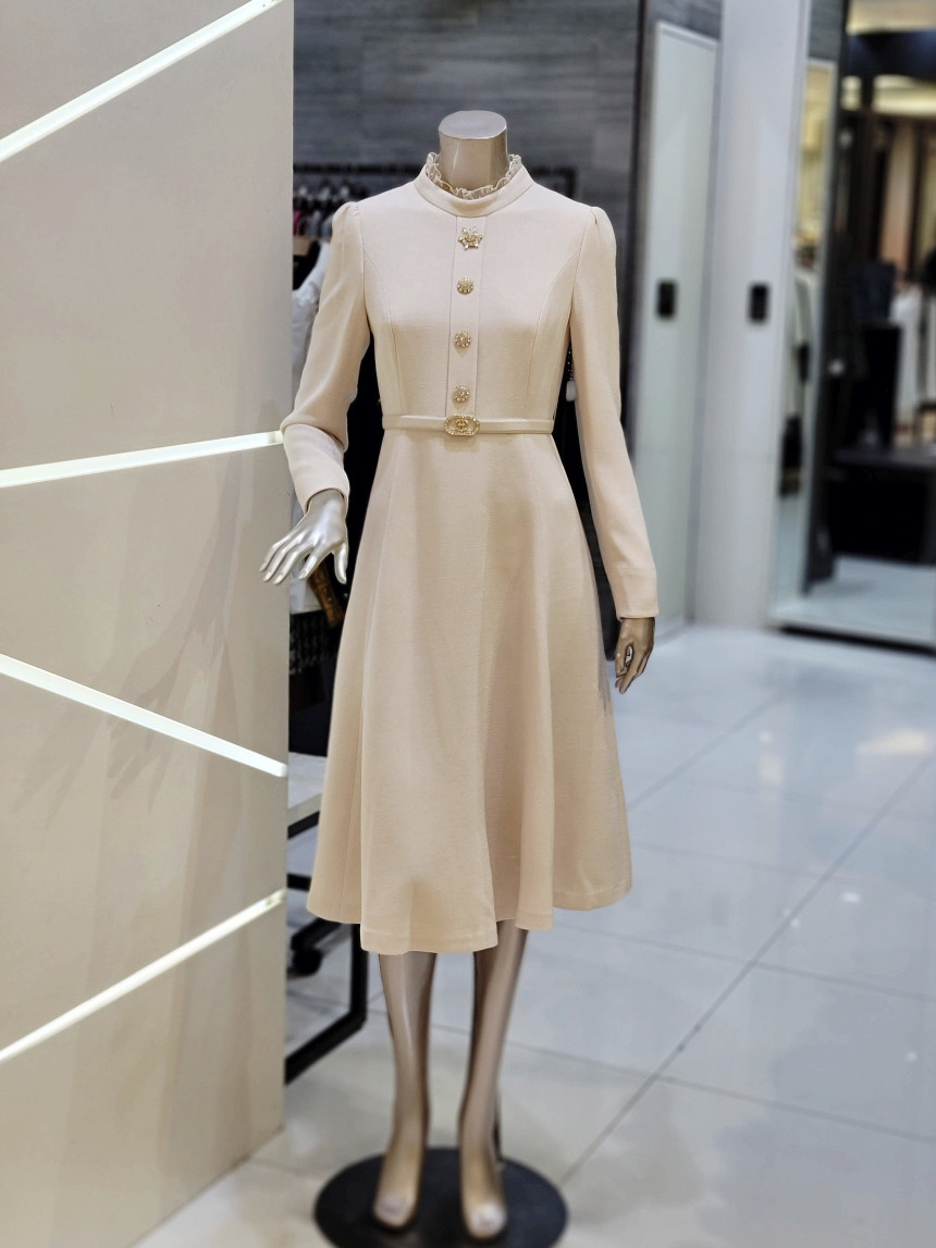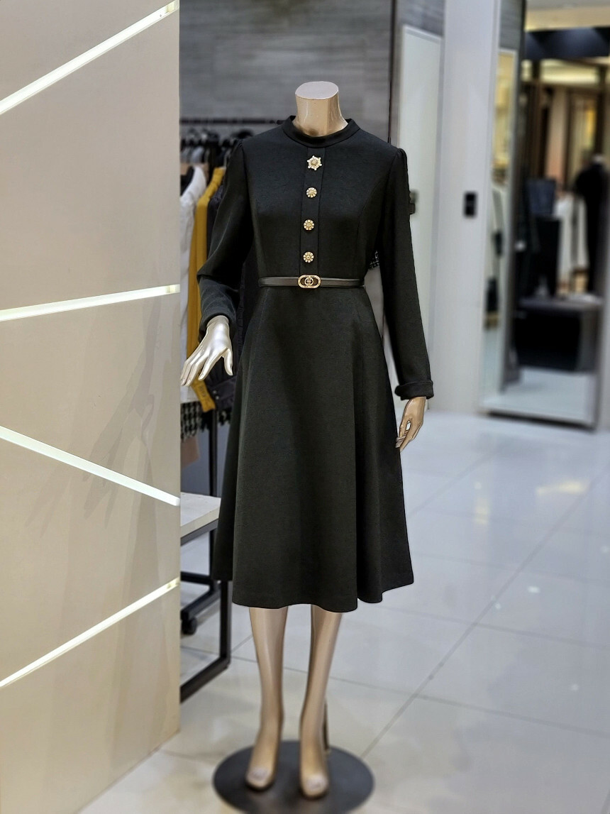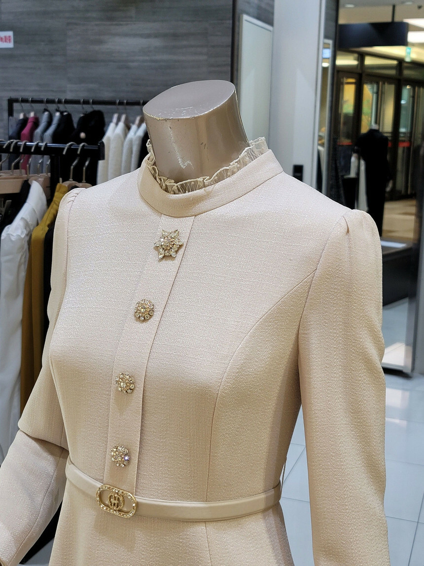 프런트 쥬얼 버튼 장식으로 고급스러운 무드의 원피스입니다.