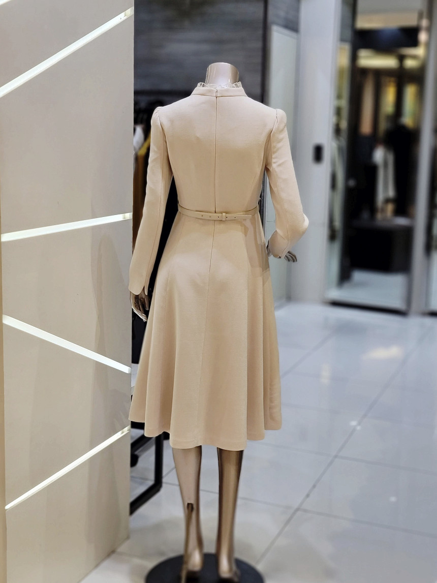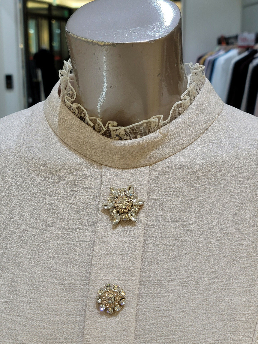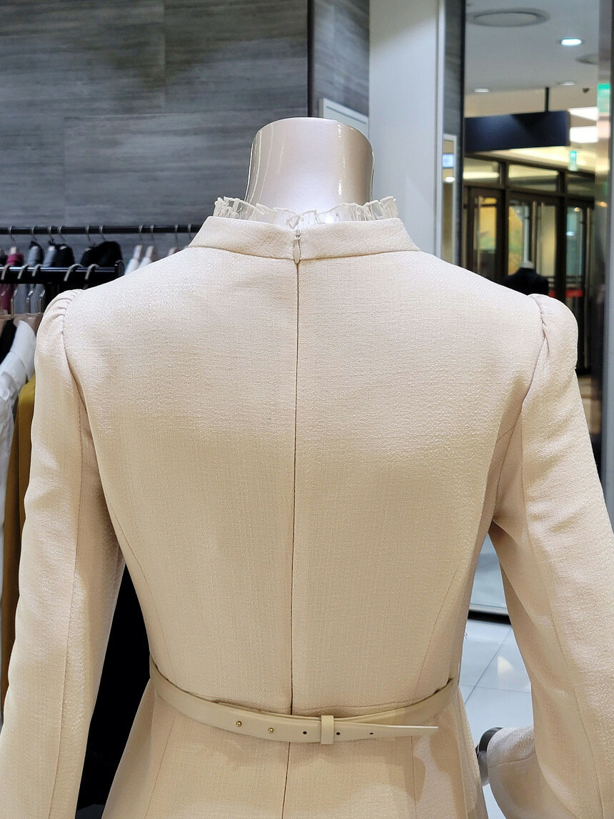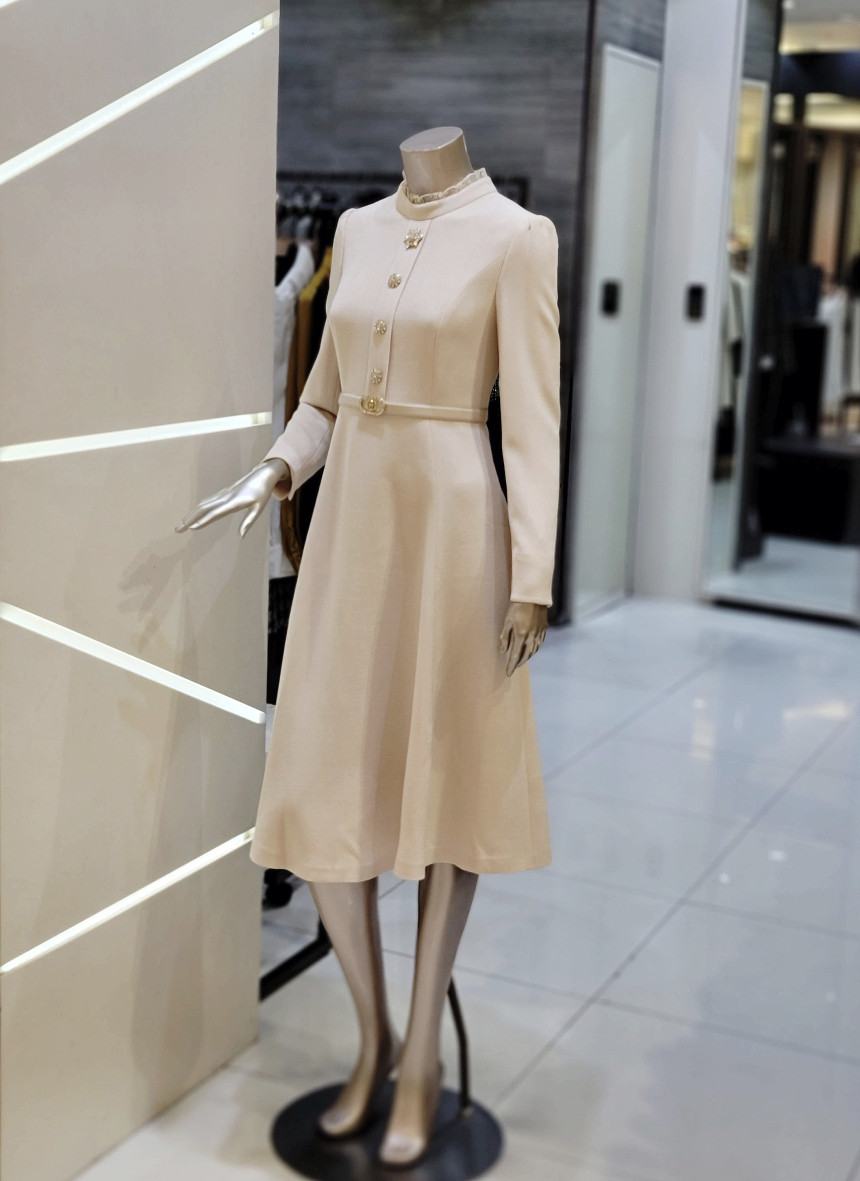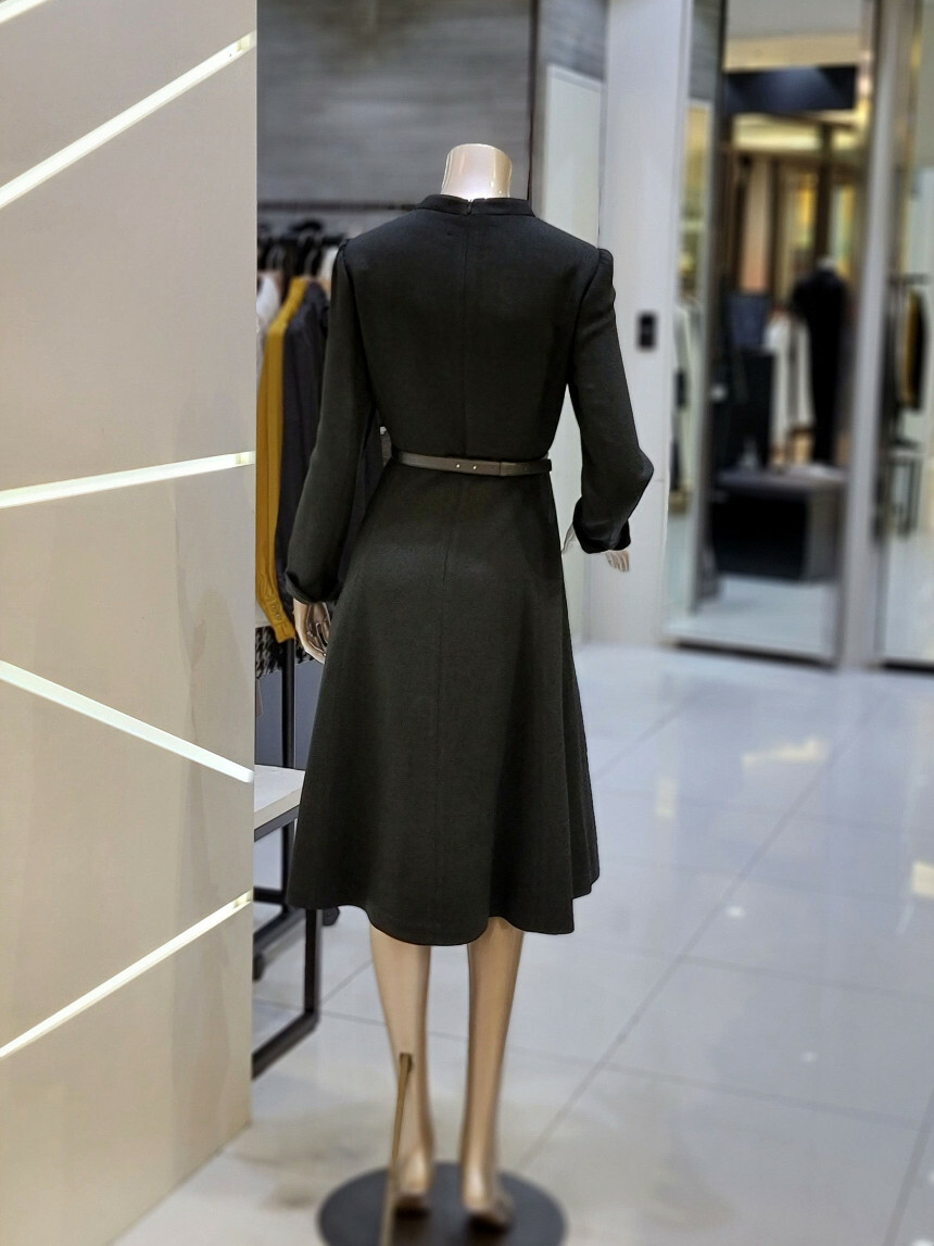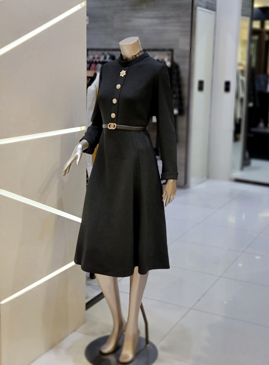 프런트 쥬얼 버튼 장식으로 고급스러운 무드의 원피스입니다.