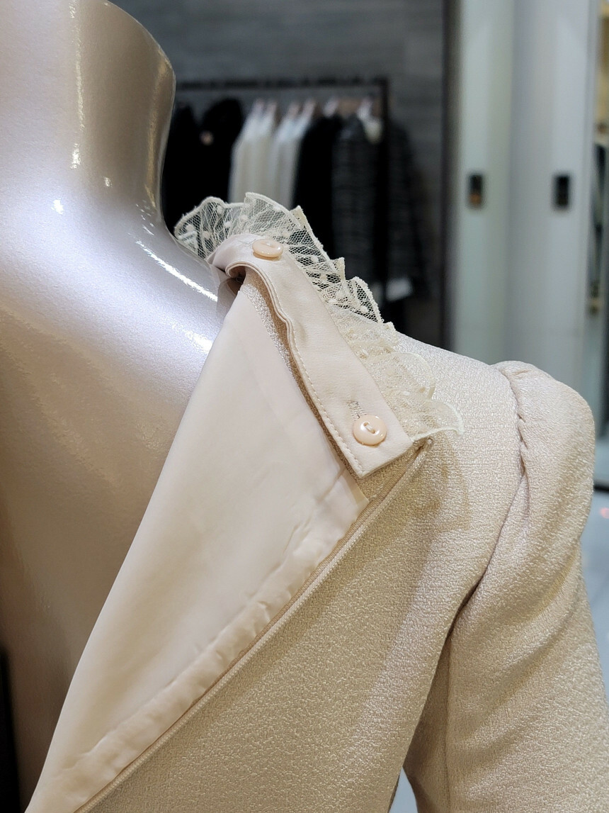 네크라인 탈착 가능한 레이스 장식 디테일로 네크 맵시를 더하며