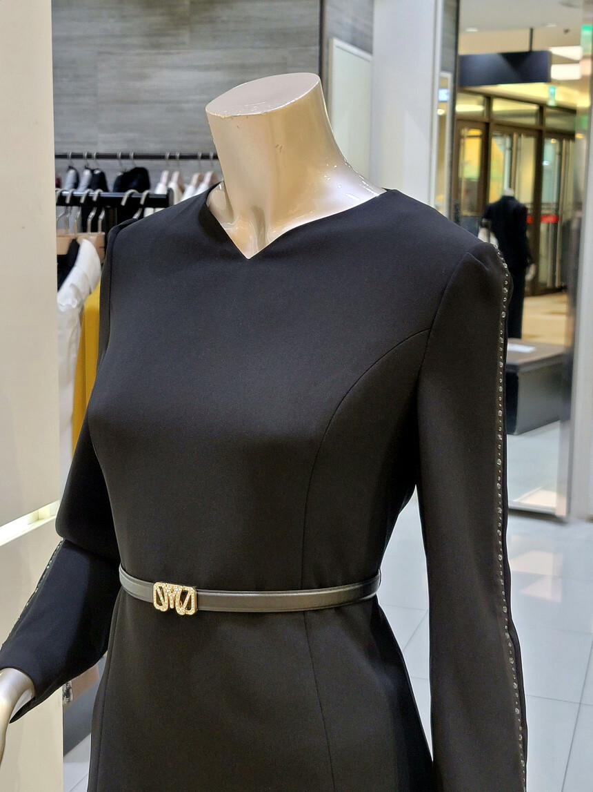 슬리브 시스루 큐빅 장식으로 포인트를 주는 원피스입니다.