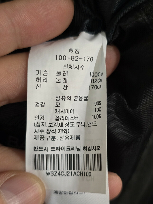 겉감 : 모 90% , 캐시미어 10%