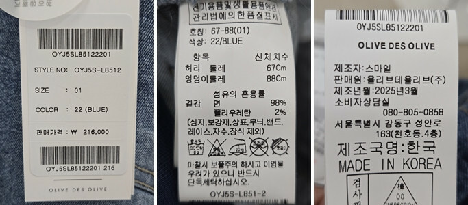 · 안감 : □ 전체 □ 부분 ■ 없음