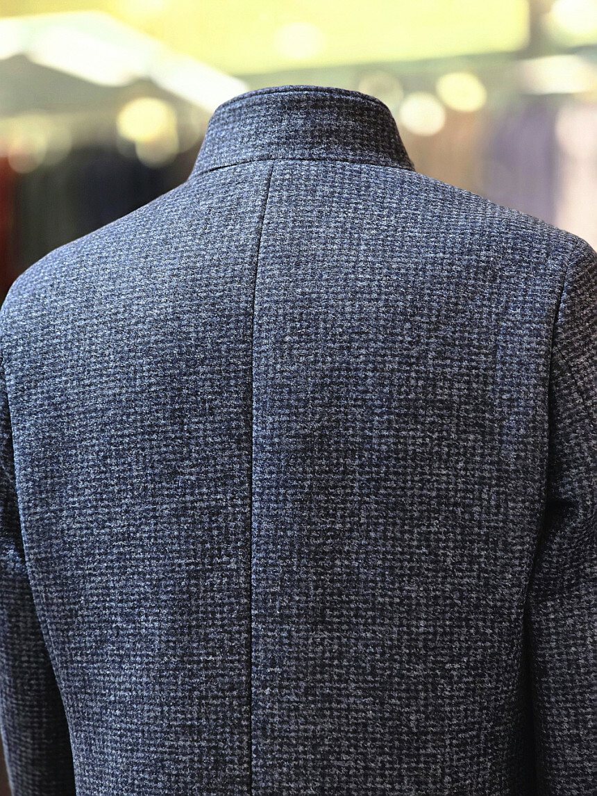 스탠드 칼라 디자인으로 깔끔하면서도 단정한 분위기를 연출하며,