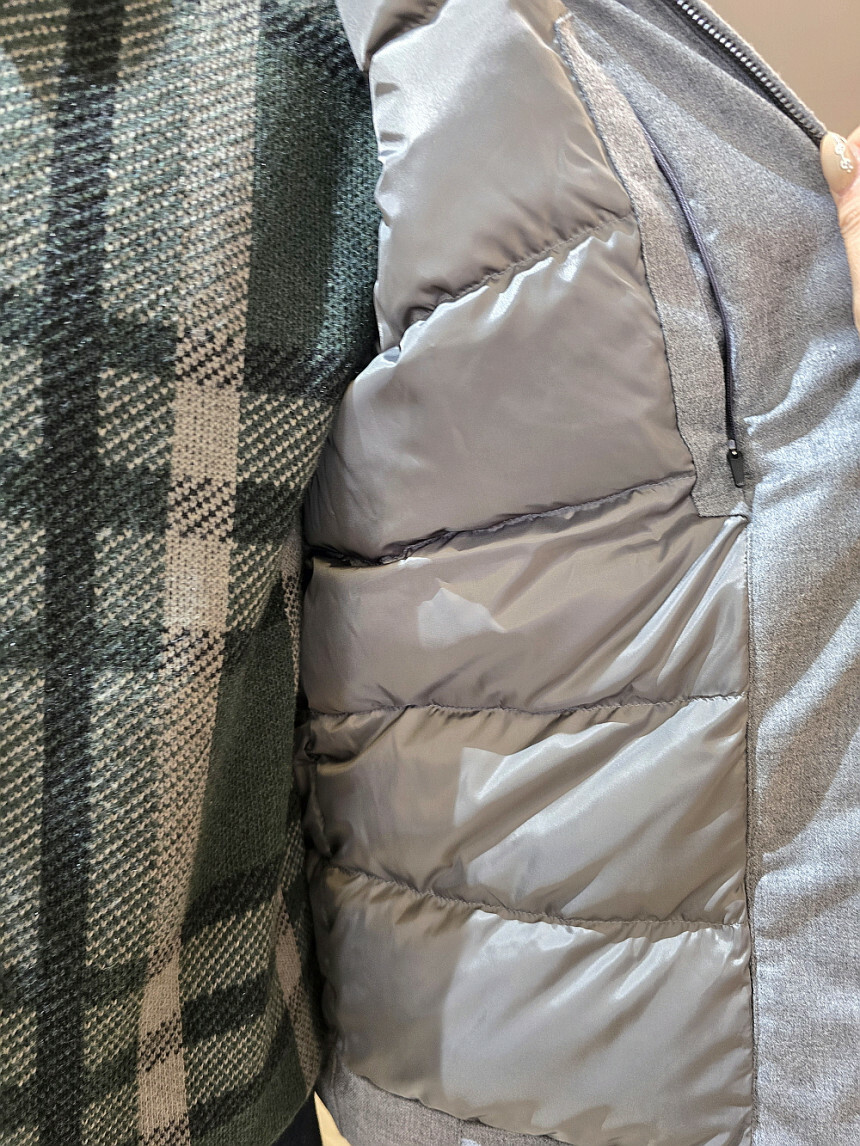 고급 울 100% 원단을 사용하여 제작된 프리미엄 안퀼팅 다운입니다.