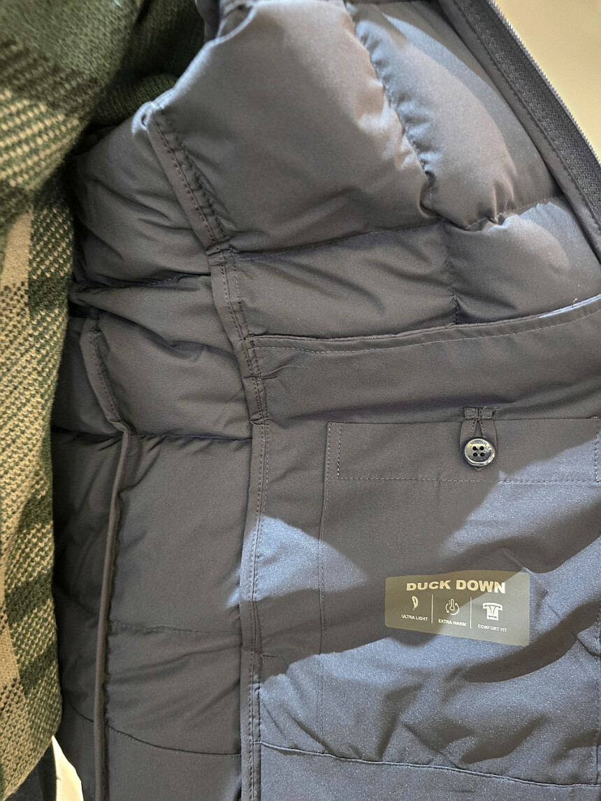 보온성을 강화하기 위해 충전재로 오리 솜털 80%, 오리 깃털 20%를 사용하였습니다.