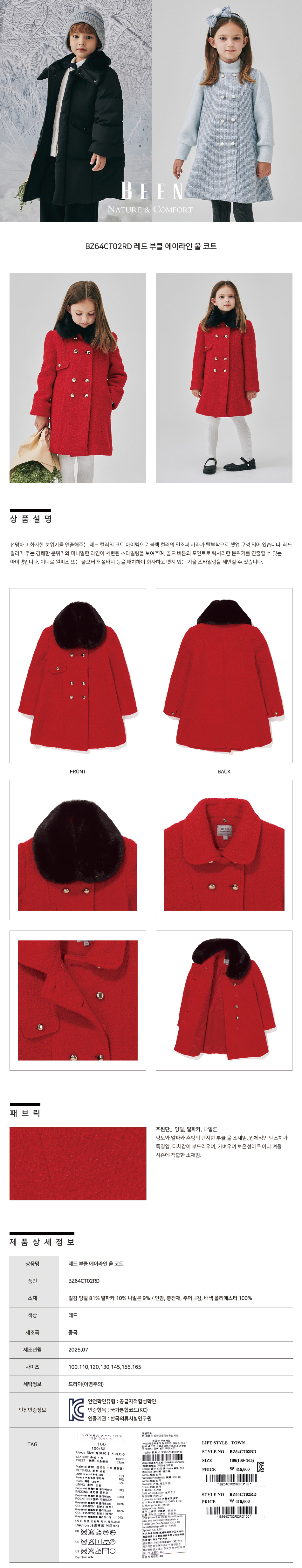 제품소재 : 겉감 양털 81% 알파카 10% 나일론 9% / 안감, 충전재, 주머니감, 배색 폴리에스터 100%