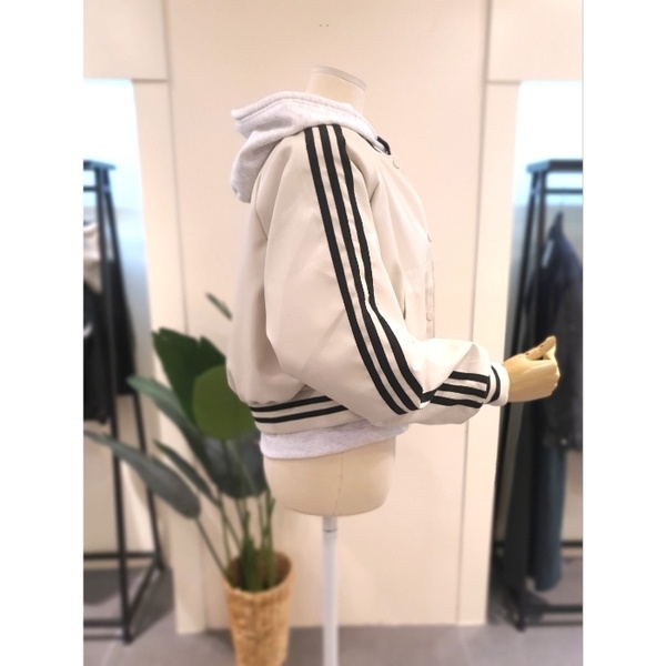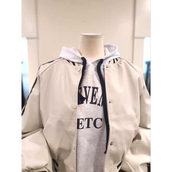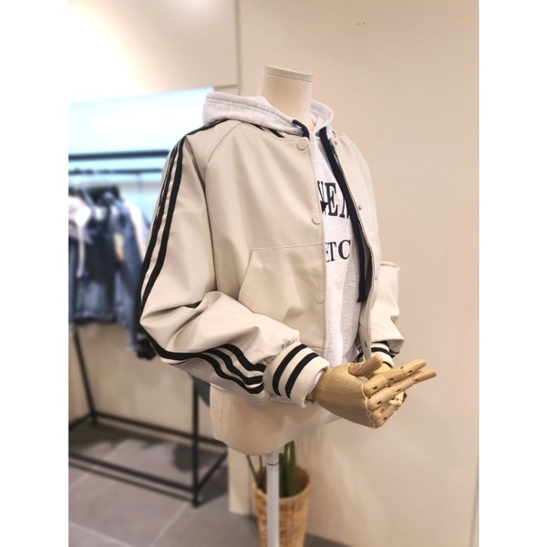 넥라인과 밑단 소매에 배색 포인트가 들어가 캐주얼합니다.