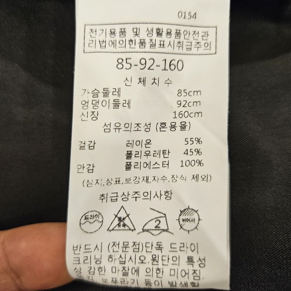 제품소재 : 겉감-레이온55%, 폴리우레탄45%, 안감-폴리에스터100%