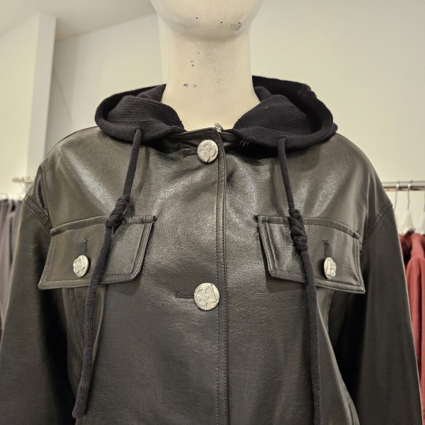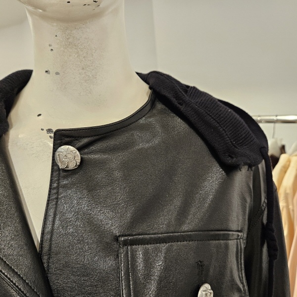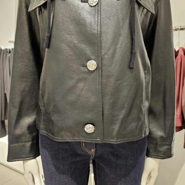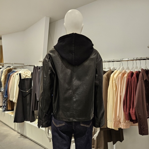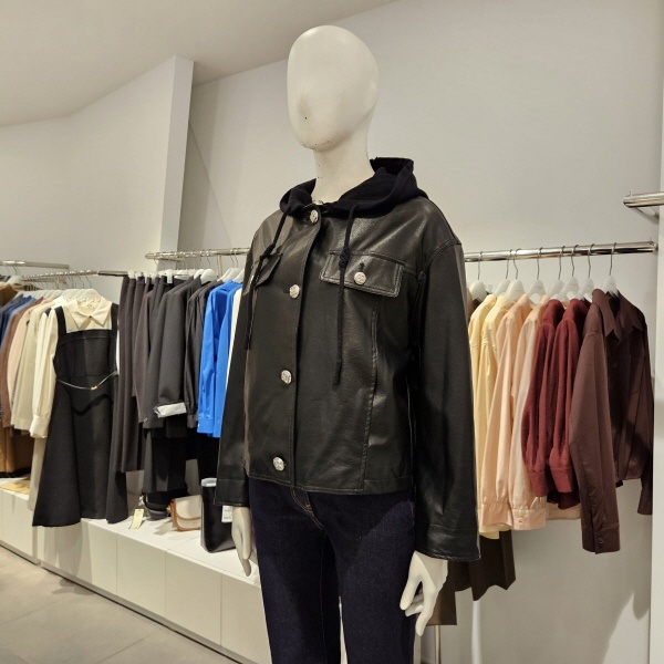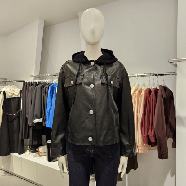 제품소재 : 겉감-레이온55%, 폴리우레탄45%, 안감-폴리에스터100%, 배색-레이온70%, 폴리에스터27%, 폴리우레탄3%