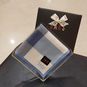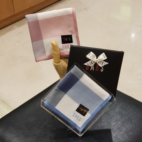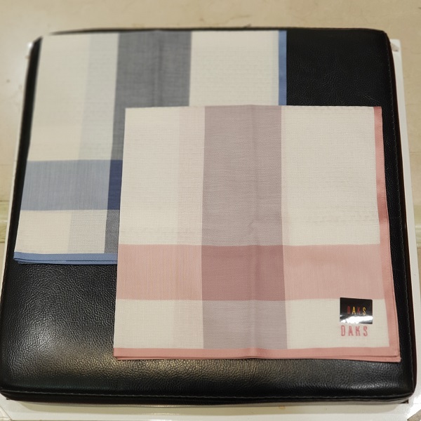 베이직한 컬러감과 큰 체크가 심플한 분위기를 담고 있는 선염 손수건입니다