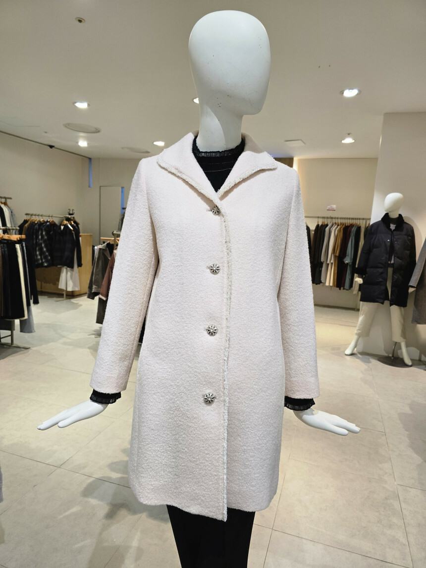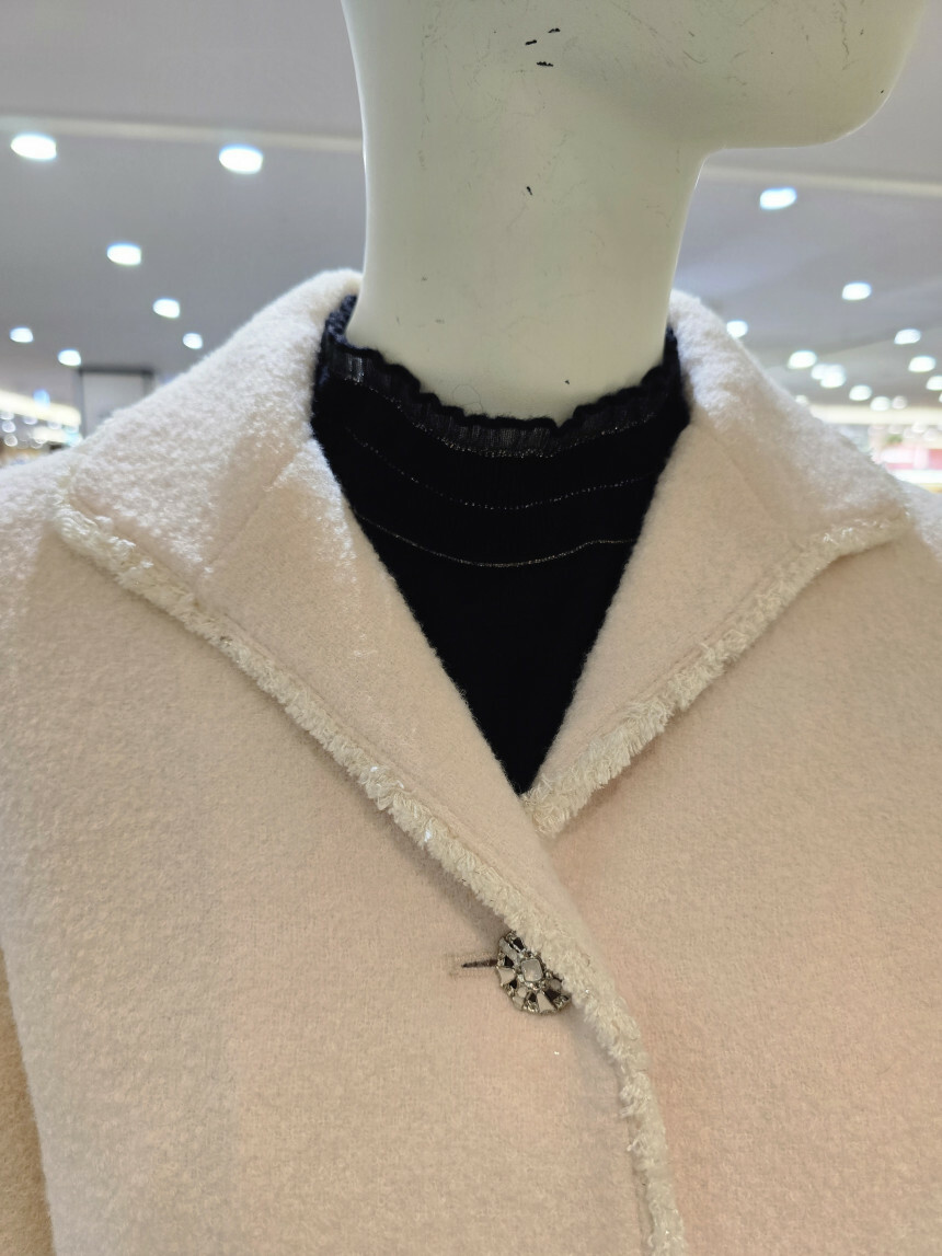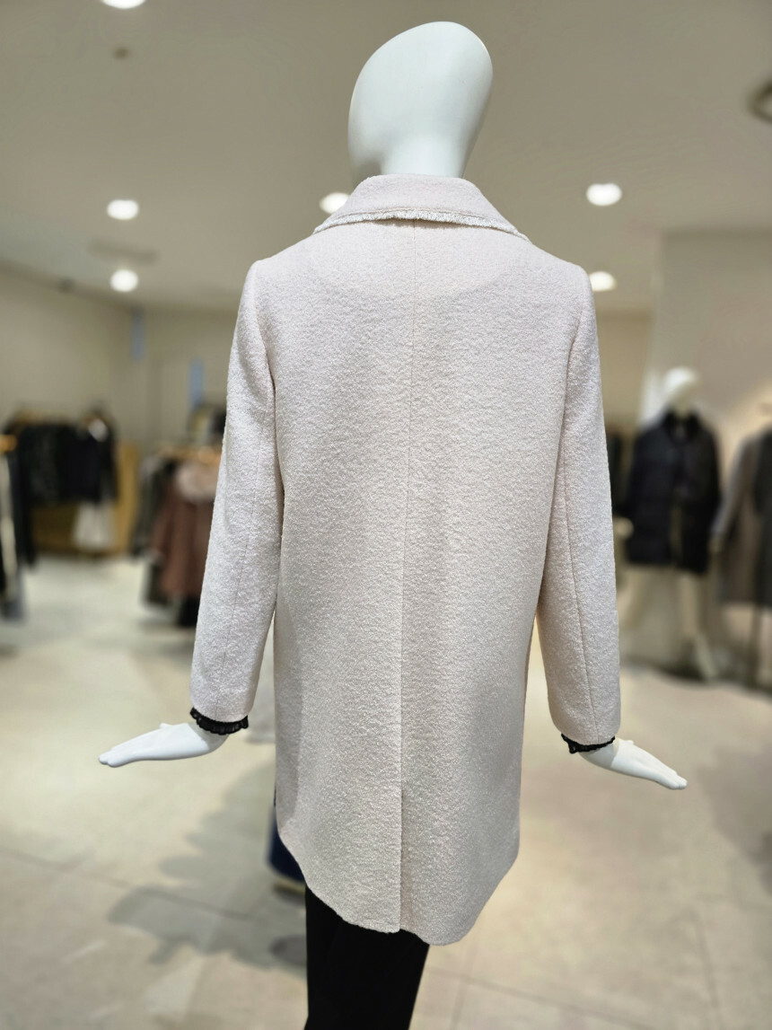 디테일 컷:넥선과 여밈쪽으로 수술로 포인트를 준 코트