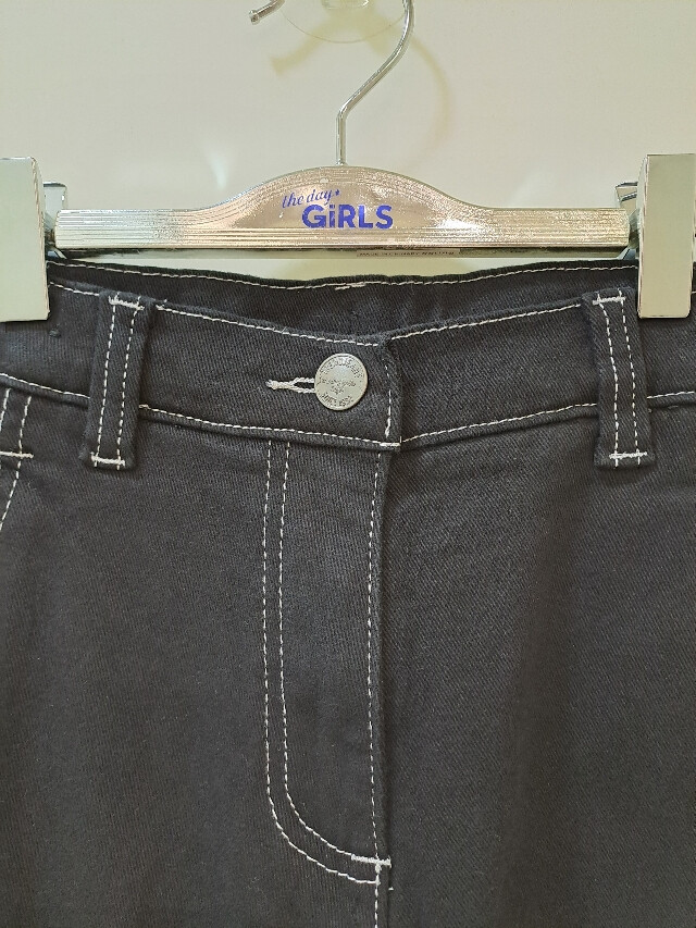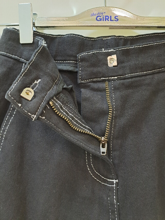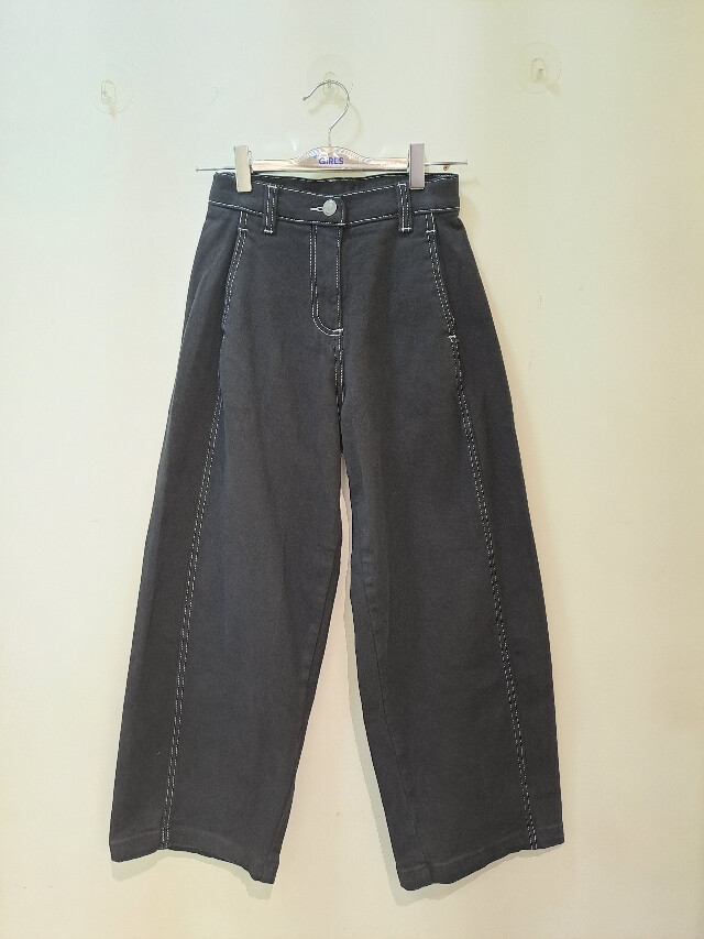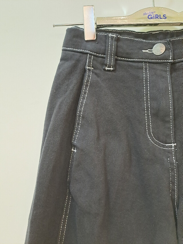 더데이걸|*|스티치 배색 배럴 레그 팬츠|*|요즘 아이들이 좋아하는 스타일의 블랙 팬츠 제품입니다.