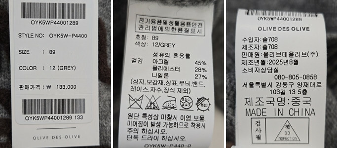 · 취급 시 주의사항 : 원단특성상 마찰시 이염,보풀,미어짐이 발생 가능하므로 착용시 주의 하십시오.