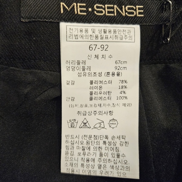 제품소재 : 겉감-폴리에스터78%, 레이온18%, 폴리우레탄4%, 안감-폴리에스터100%