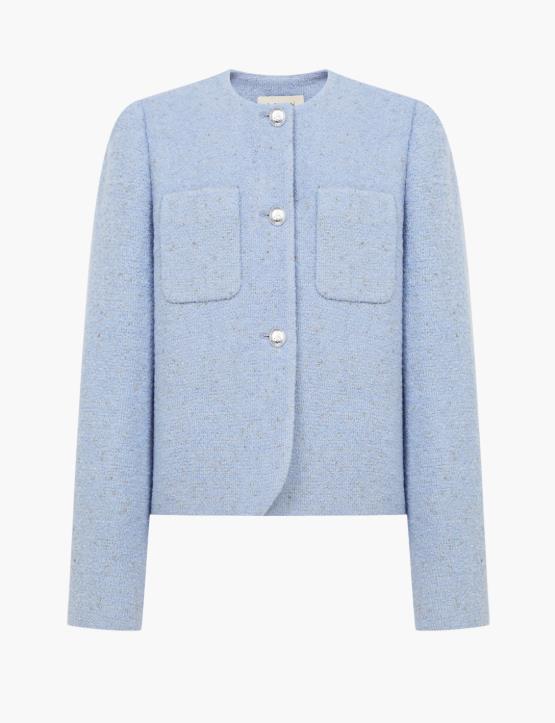 페미닌한 무드의 노카라 트위드 자켓입니다.