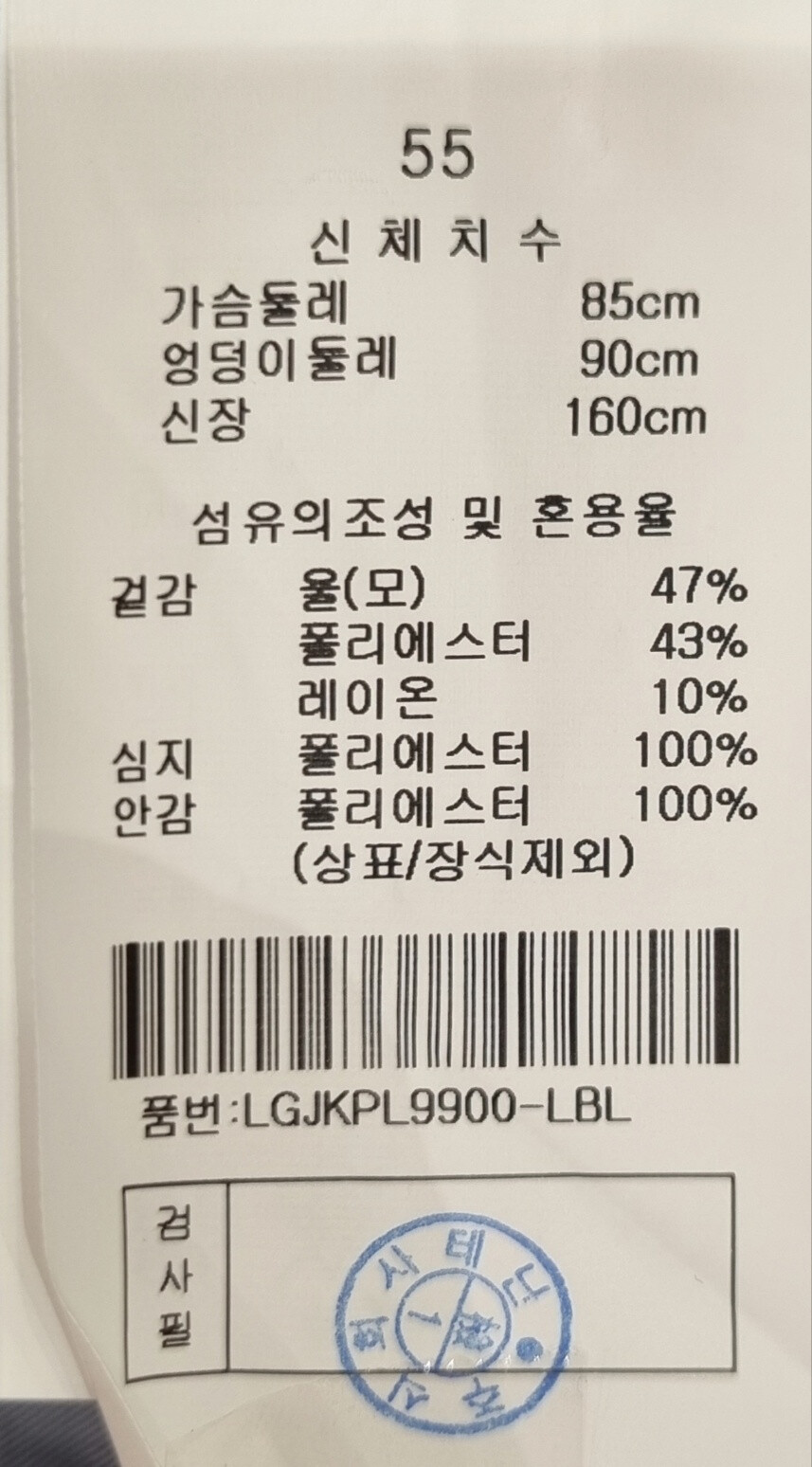 안감 폴리에스터:100%