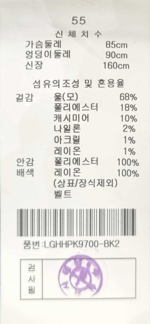 BLACK - 겉감 울(모):68%