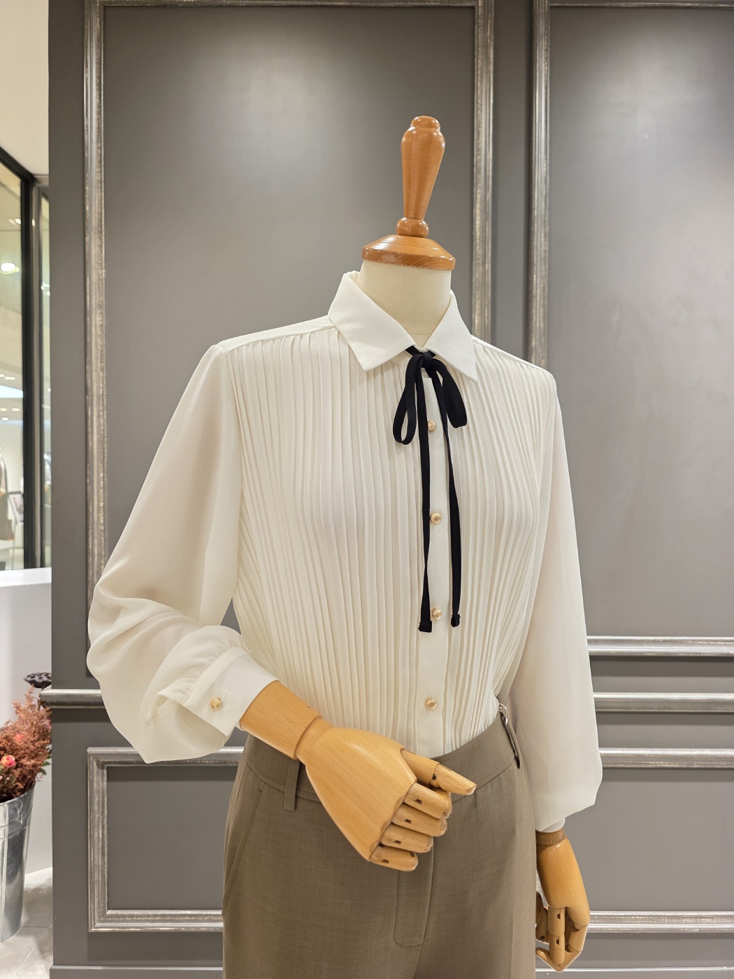 25년 F/W 신상품 카라넥 다지인의 리본 타이 블라우스입니다? ?