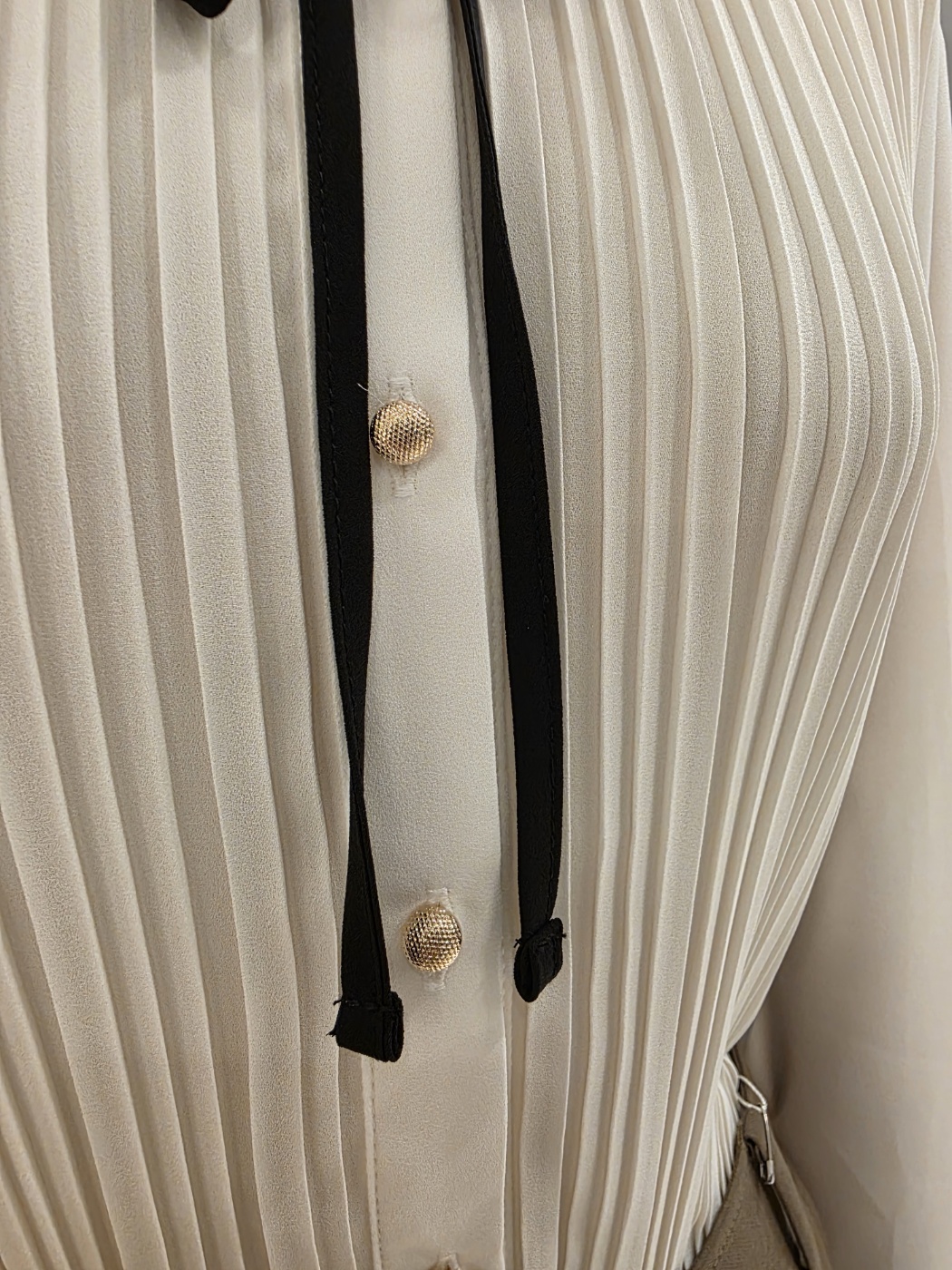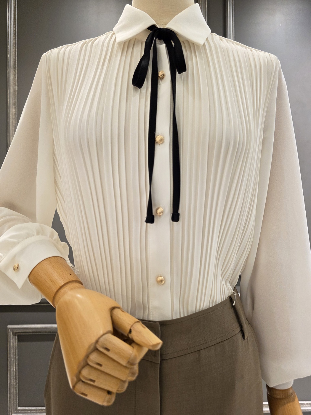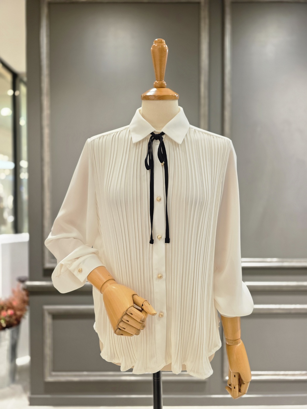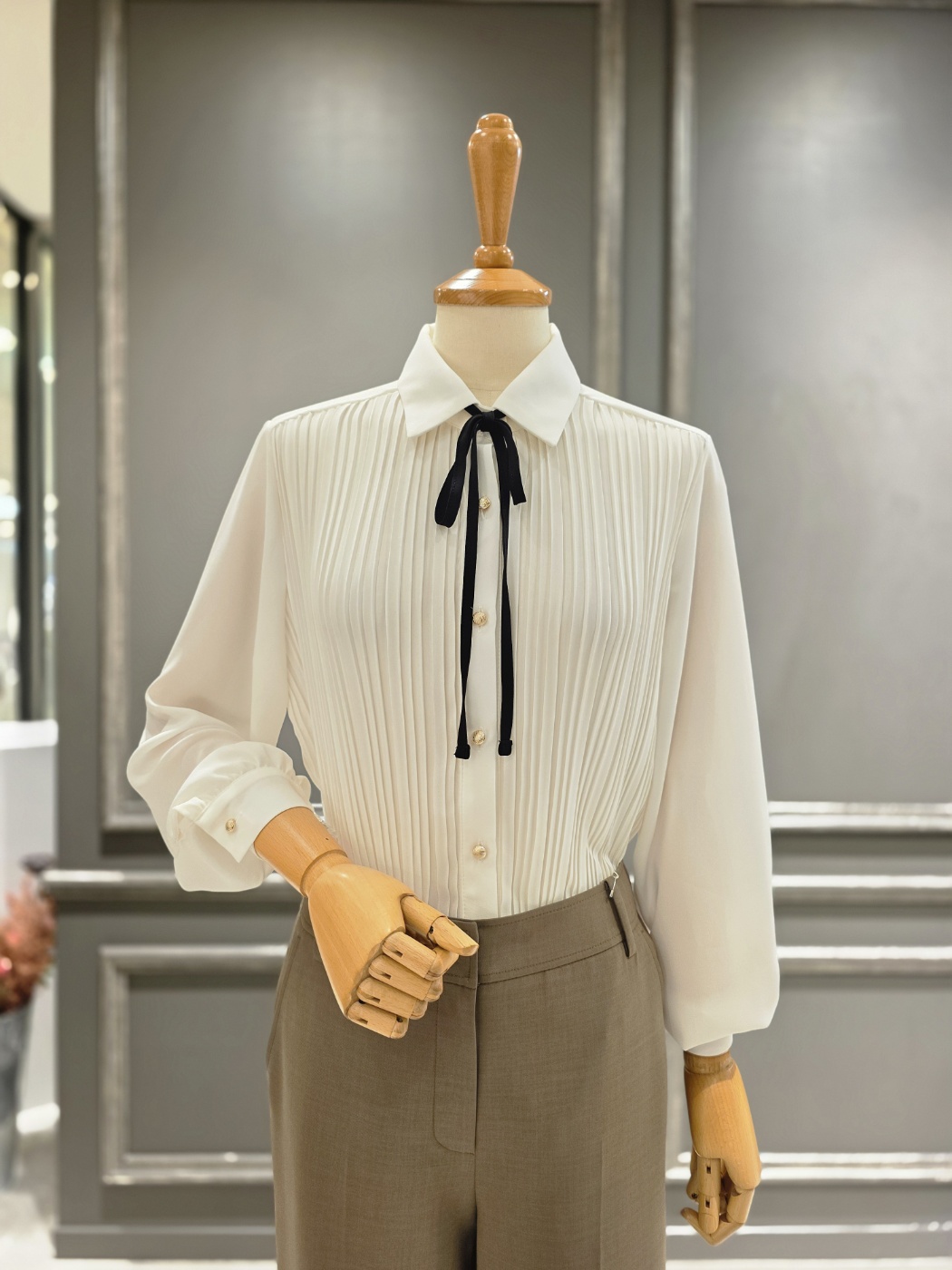 잔잔한 주름 디자인으로 자켓이나 스커트에 하객룩이나 데이트룩으로 매치하시기 좋습니다