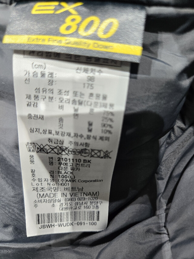 고품질 800필 파워 EX 다운에 난연성 소재 플레어텍트