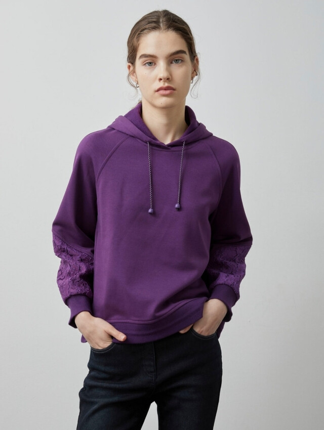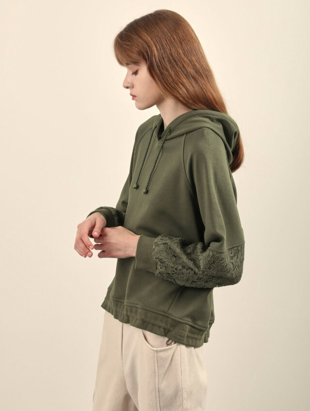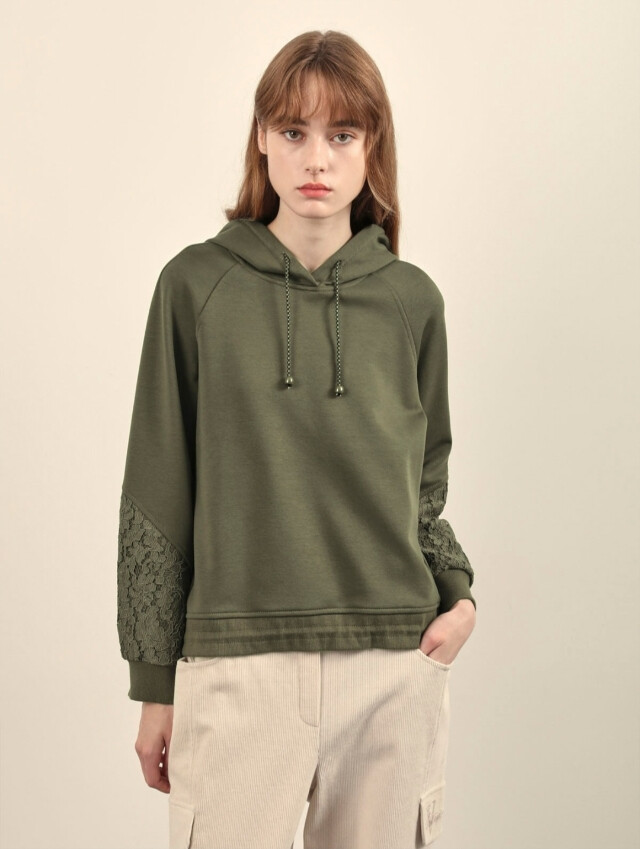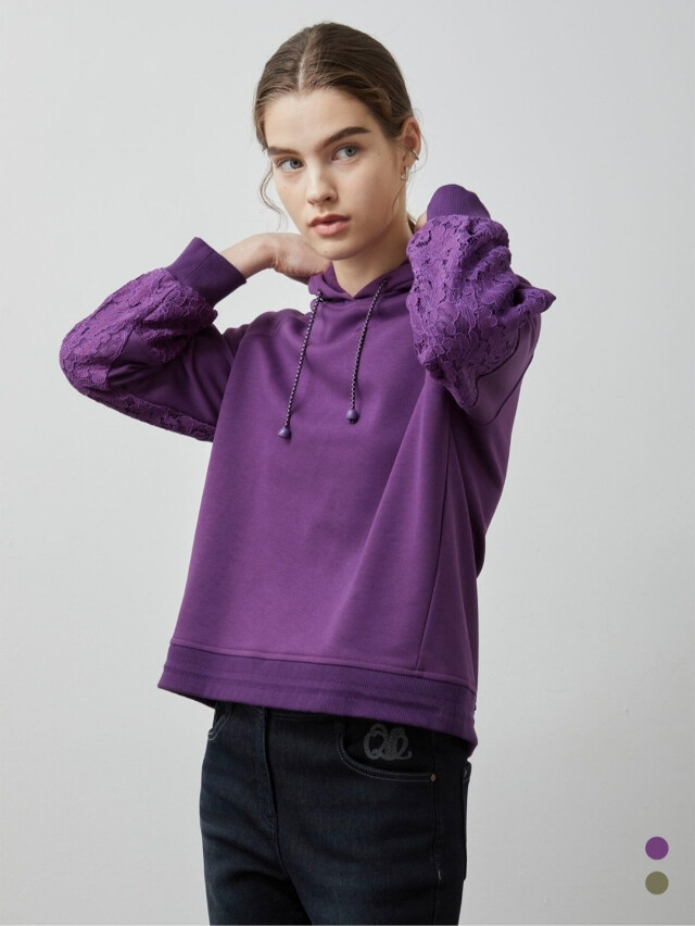 소매쪽에 레이스가 패치되어 볼륨감을 주는 디자인의