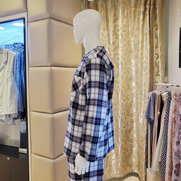 면선염 체크에 기모 가공을 하여따뜻하고 포근한 감촉을 느낄 수 있습니다.