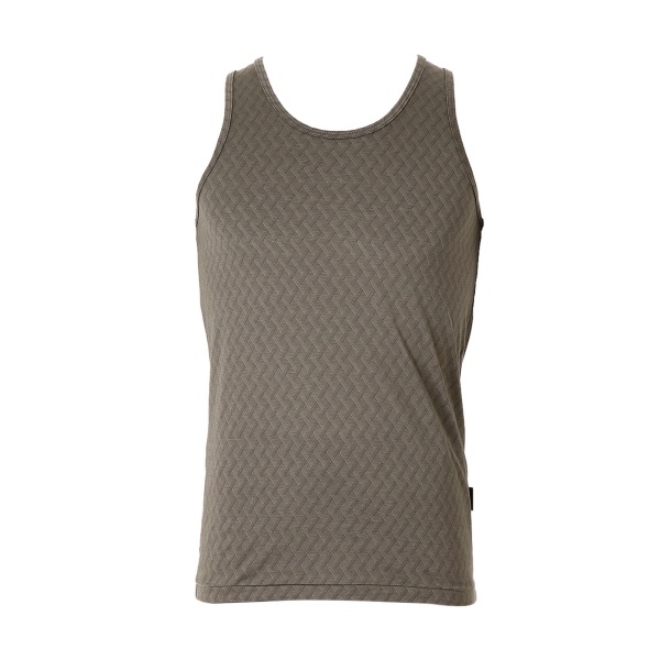 모던한 칼라감의 마름모 조직이 돋보이는 ?면80수 선염 민소매 런닝으로