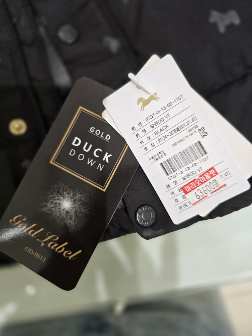 덕다운 충전재로 따뜻한 패딩 조끼입니다