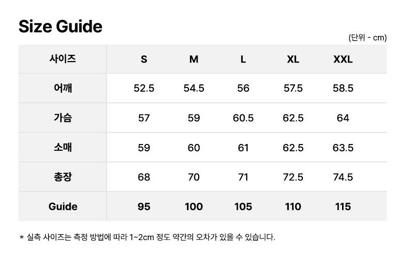 사이즈 : 95(S),100(M),105(L),110(XL),115(XXL)