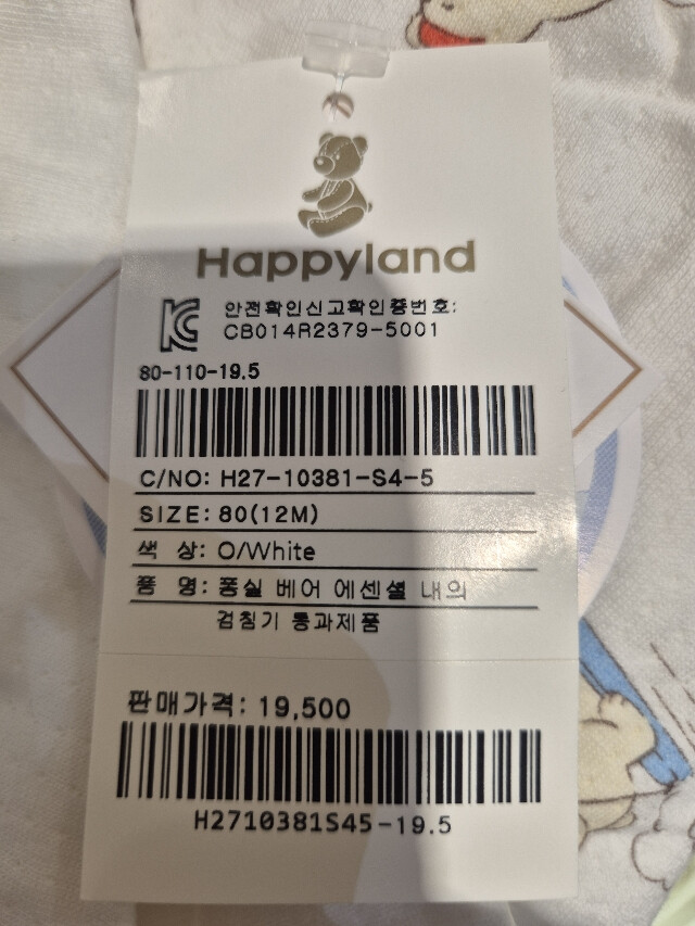 해피랜드 퐁실 베어 에센셜 내의
