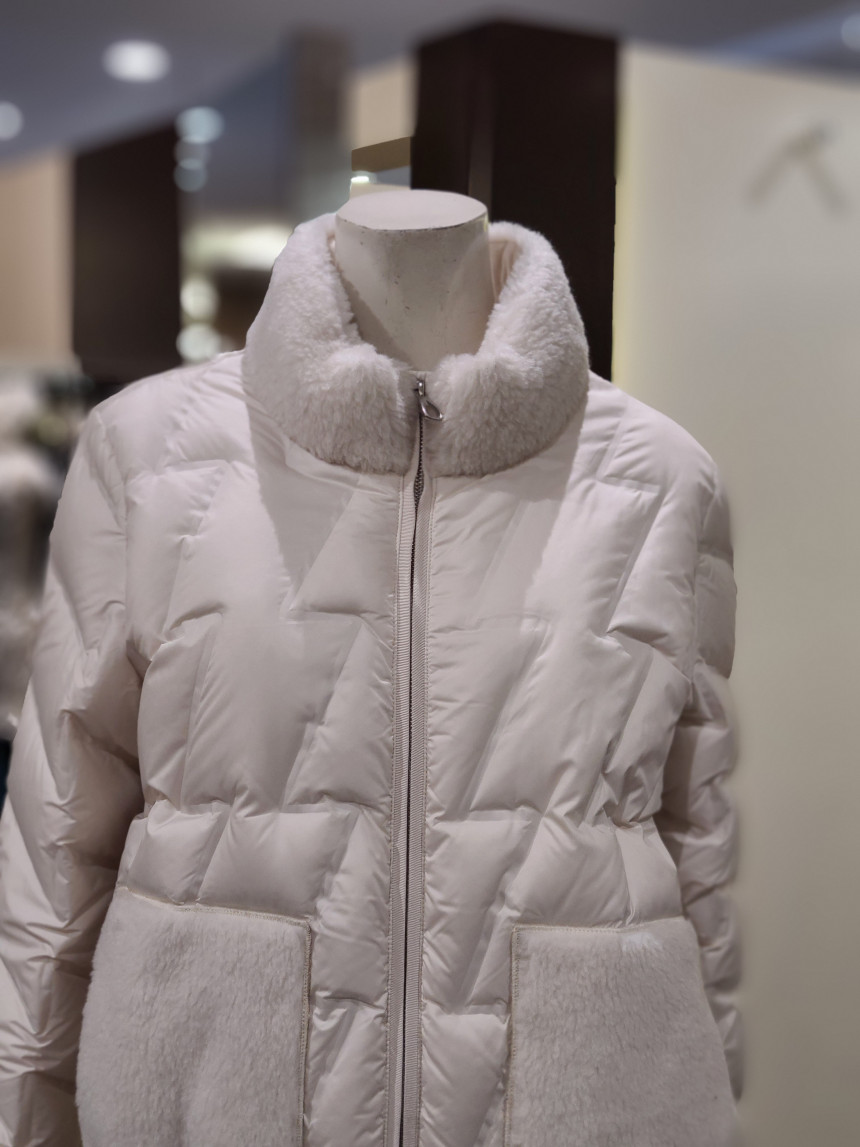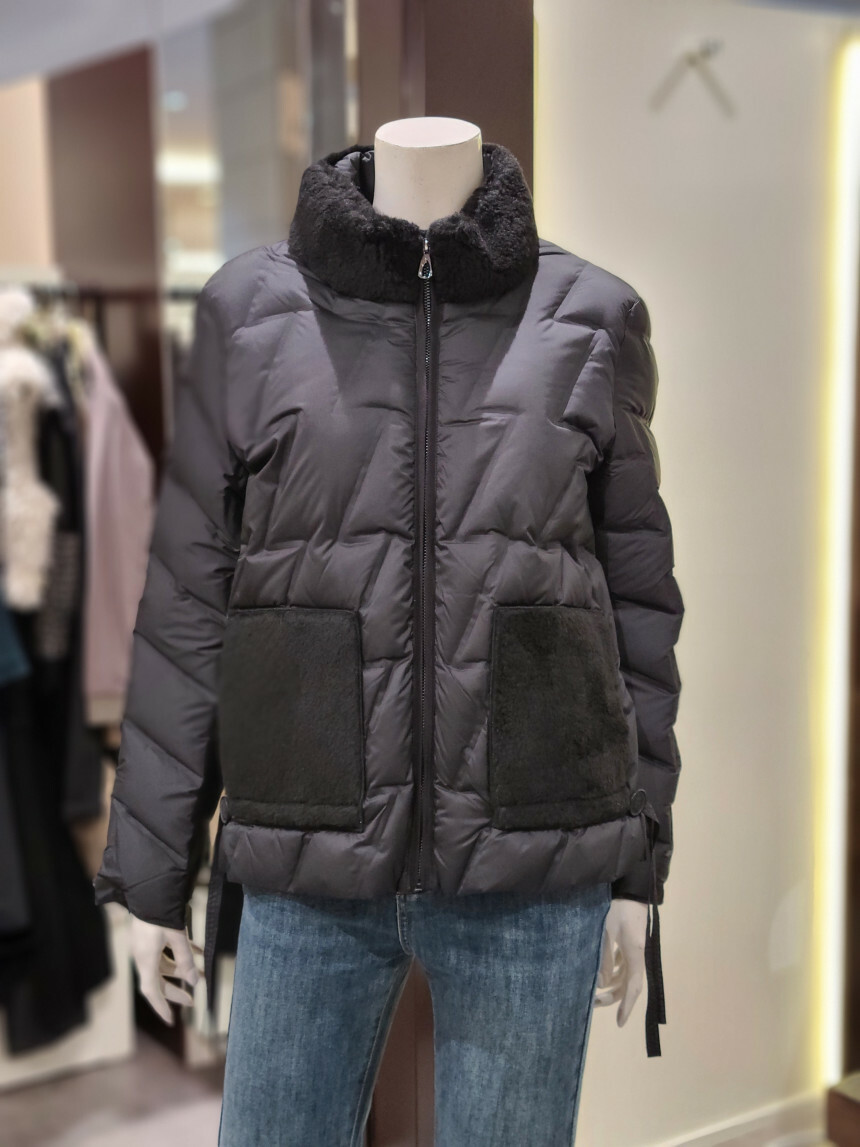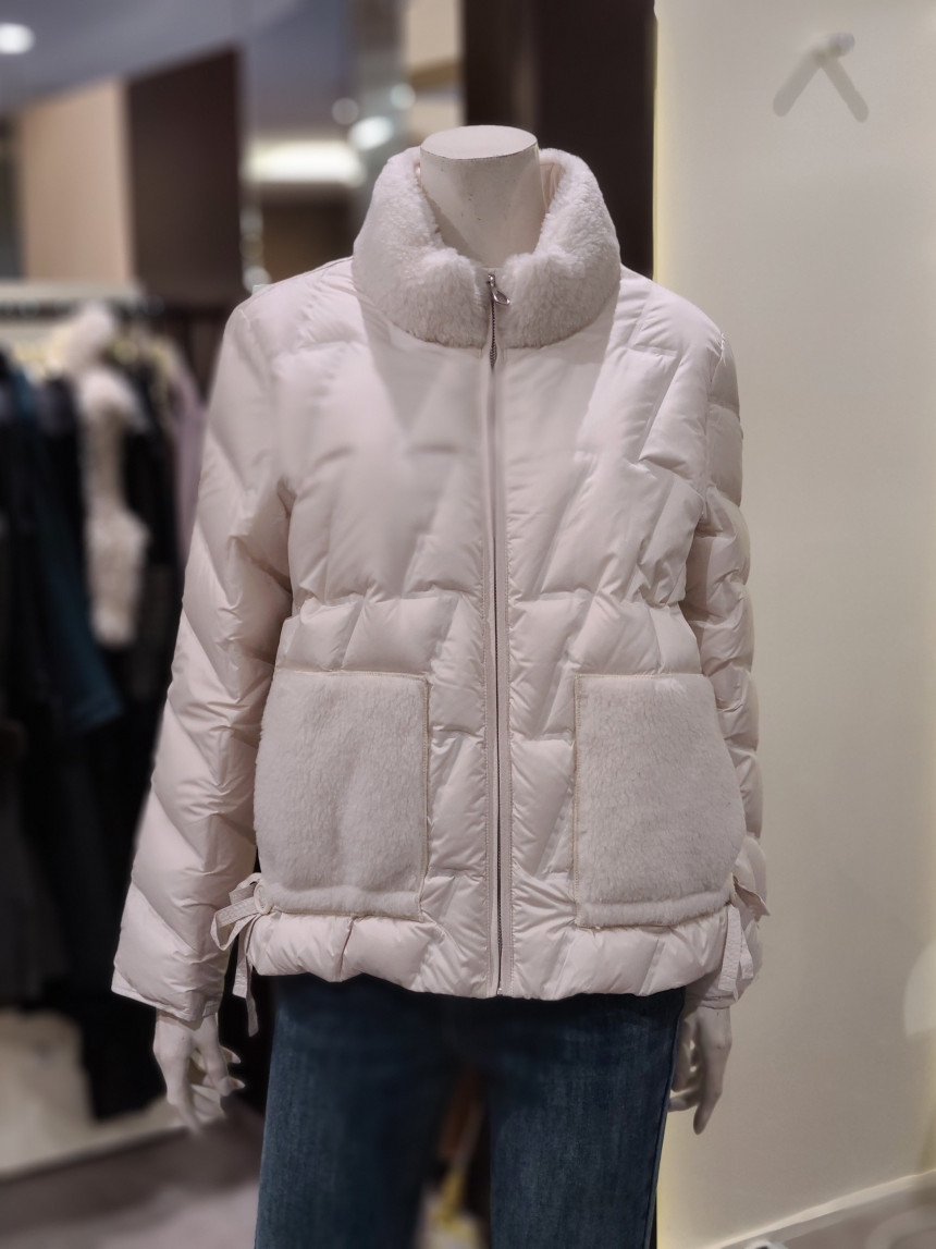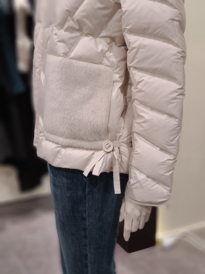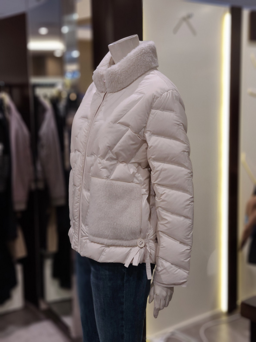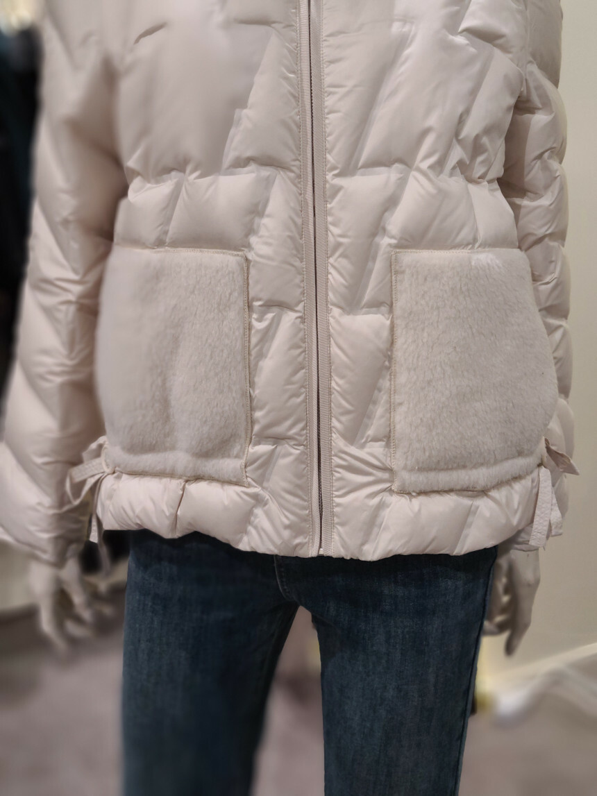 겉감:폴리에스테르 100% / 안감:폴리에스테르 100% / 충전재: 오리솜털 80%, 오리깃털 20% / 배색: 양모 30%, 폴리에스테르 70%