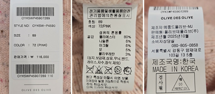 겉감:폴리에스터80%나일론6%아크릴6%모5%폴리우레탄3%