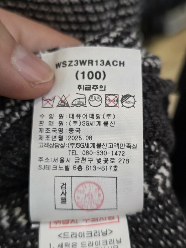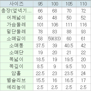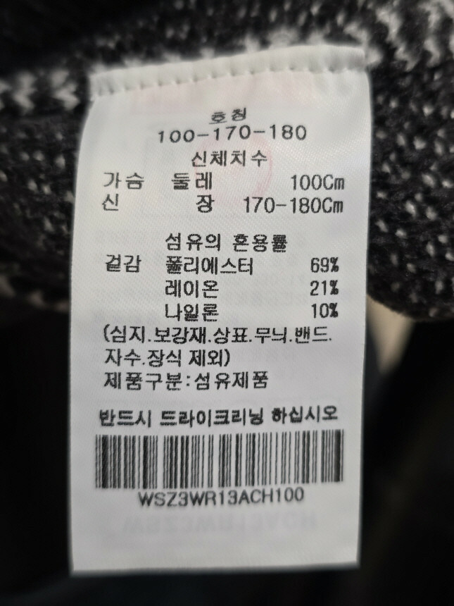 겉감 : 폴리에스터 69% , 레이온 21% , 나일론 10%